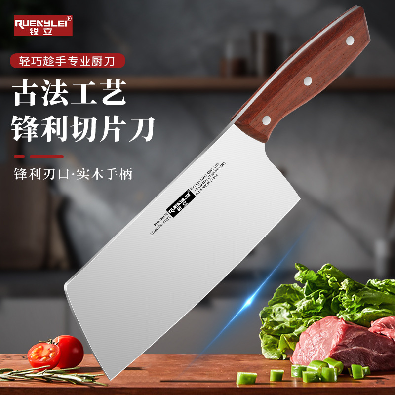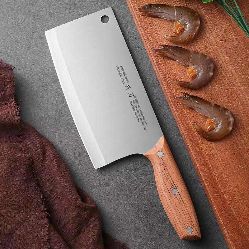 广东阳江不锈钢家用菜刀实木手柄锋利切片刀砂光镜面厨房用切菜刀