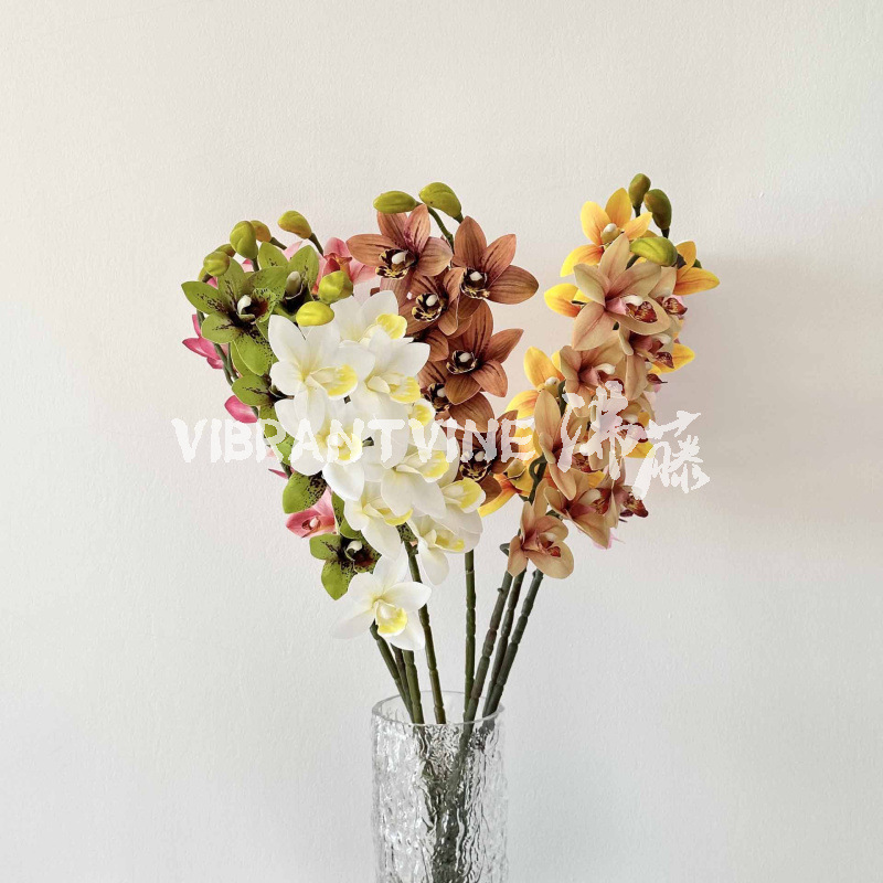 仿真花8头手感过浆蕙兰 婚庆仿真花布置家居客厅装饰摆件假花批发