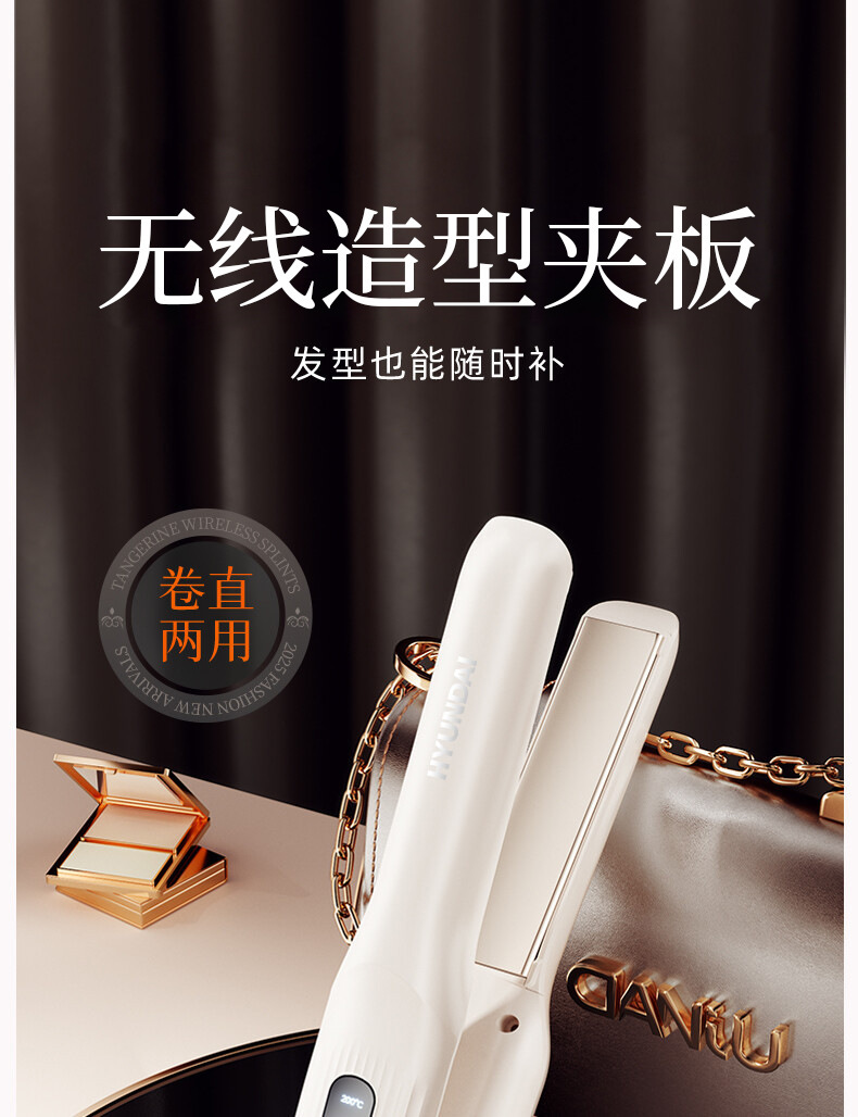 HYUNDAI ワイヤレスマイナスイオンストレートヘアクリップは髪を傷つけません、ストレートヘアクリップ、前髪をまっすぐにし、高頭頂部をポータブルでユニバーサルにします。