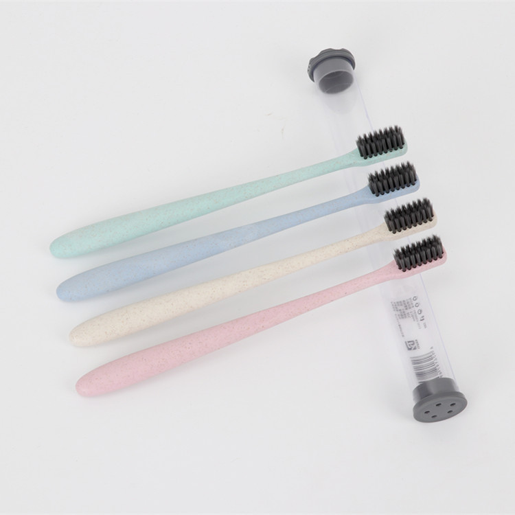 益晨小麦わら単枝竹炭歯ブラシ携帯旅行成人細軟毛小頭歯ブラシ