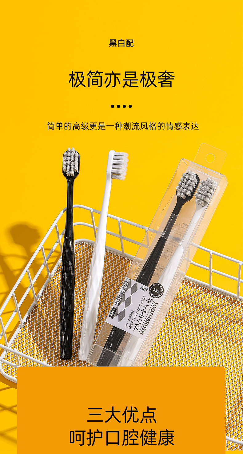 成人銀イオン抗菌歯ブラシ2本セットカップル家庭用ワイドヘッド超微細軟毛歯ブラシメーカー現物卸売り