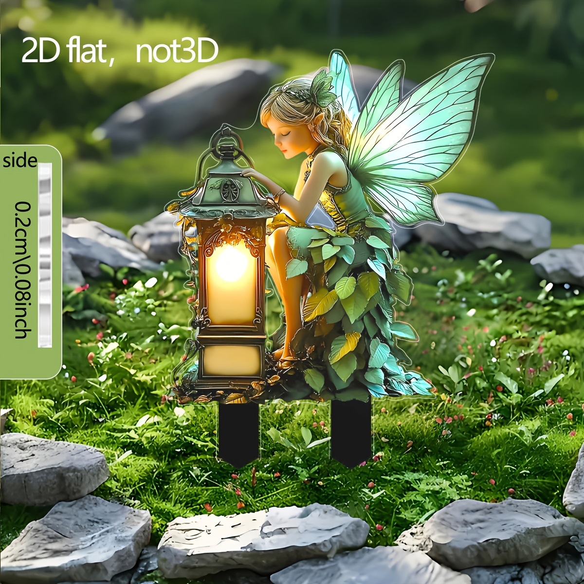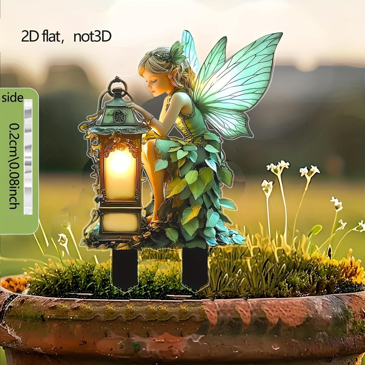 2D プレーン魅力的な妖精の庭インサートカード、光るランタン付き - 2D プレーン印刷アクリル屋外装飾