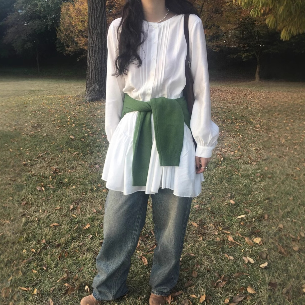 2024春秋の長袖シャツの女性服のデザイン感が小さいです。