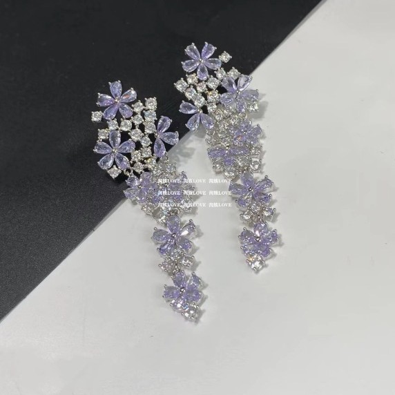 ラベンダーフラワータッセルイヤリングニッチライトラグジュアリーエレガントロングダイヤモンドフラッシュダイヤモンドハイエンドイヤリング