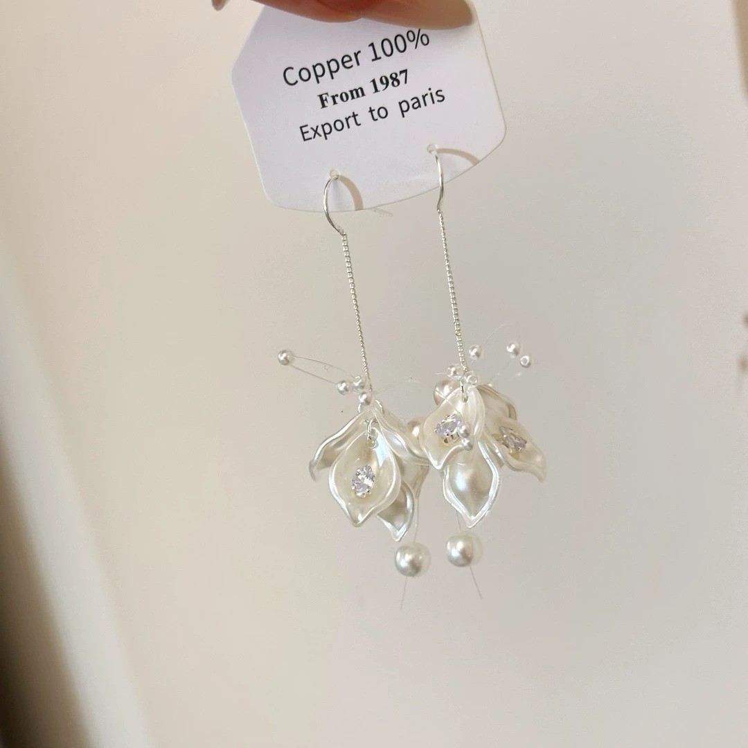 法式仙气花朵珍珠流苏耳环女款小众温柔设计感气质百搭高级感耳饰