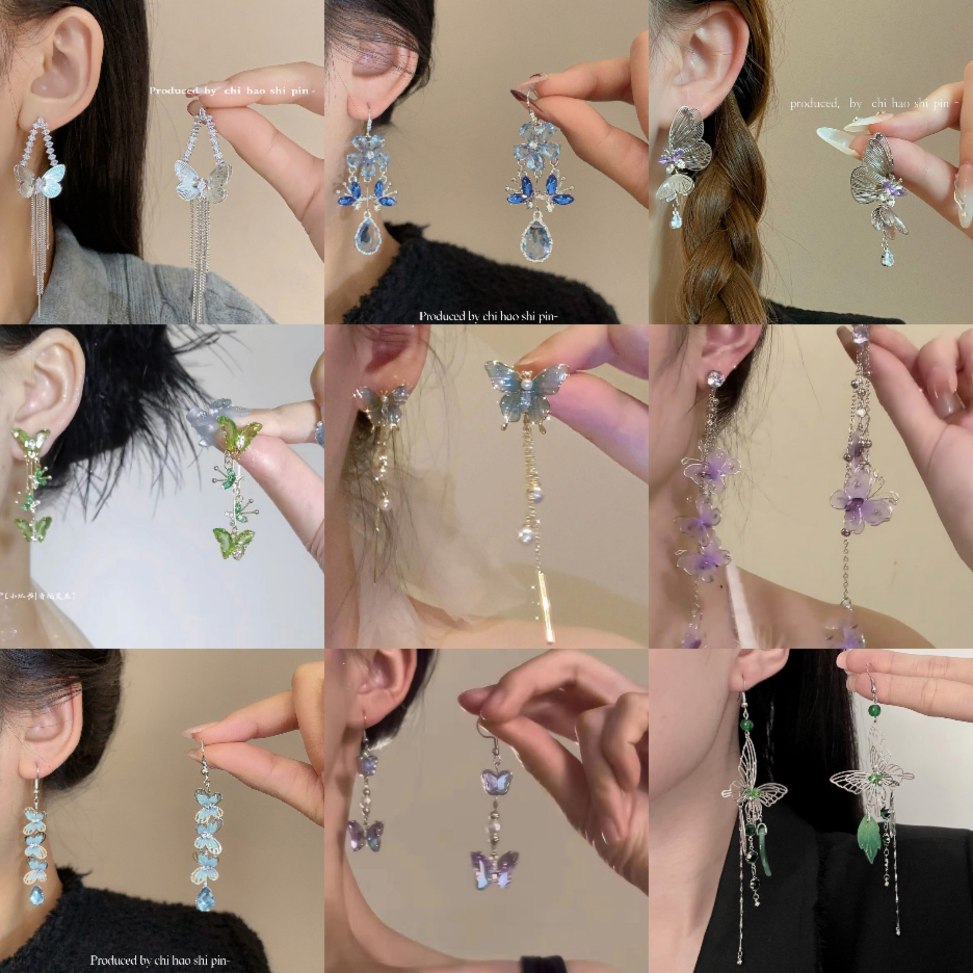 千金少女 ~ 軽豪華フラッシュドリル蝶流蘇イヤリング2025新型大衆デザイン高級感気質耳飾り
