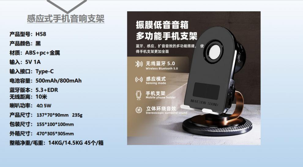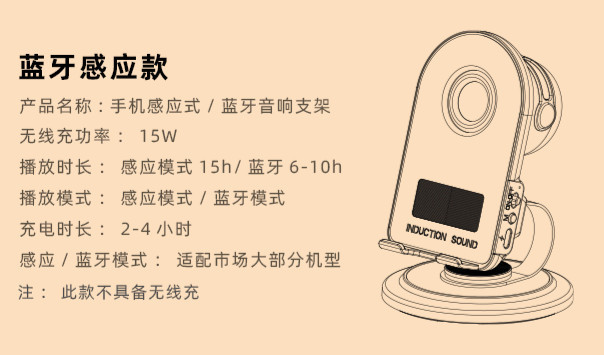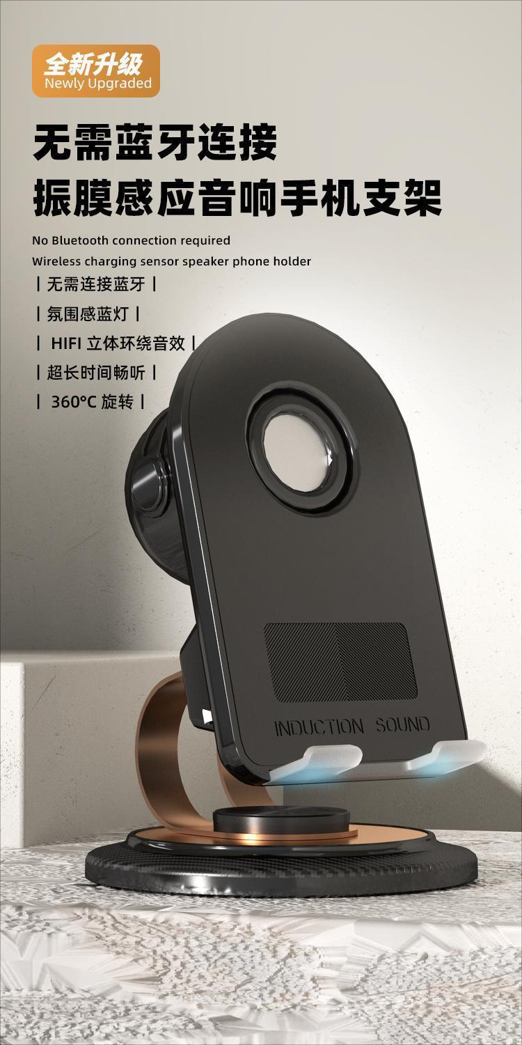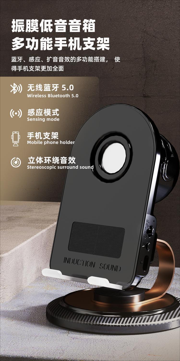 【Bluetoothモデル】スピーカー+多機能携帯電話ホルダー,-【アップグレードモデル】誘導-Bluetooth-接続不要-マルチ運動エネルギーブラケット