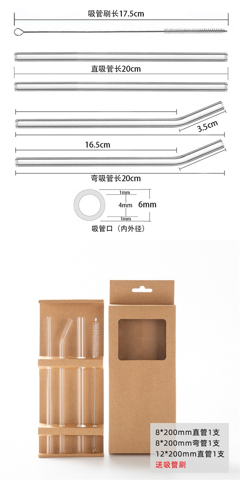 现货高硼硅玻璃吸管多支装盒装耐高可重复水洗带刷子史丹利杯配套