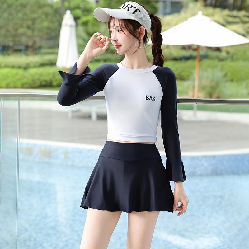 女性用コンサバティブスプリット水着、お腹カバー、痩身、高級感、痩身、海辺での休暇、長袖、海外留学女子水着