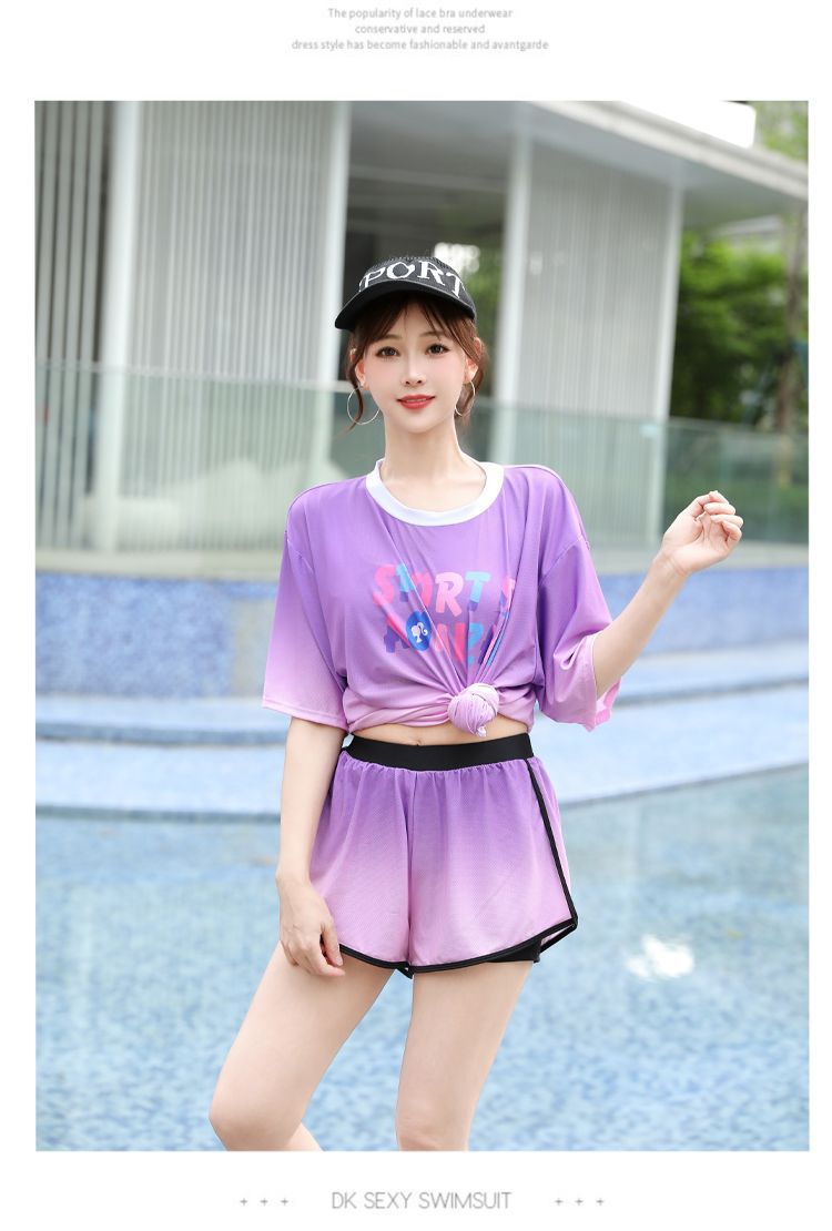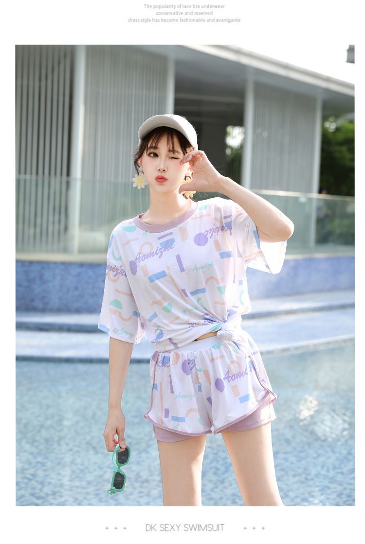 2025年新作 スプリットスポーツ水着 女子学生3点セット コンサバお腹カバー 温泉入浴用着痩せブラウス