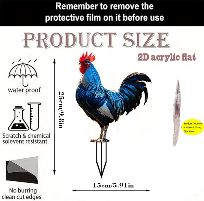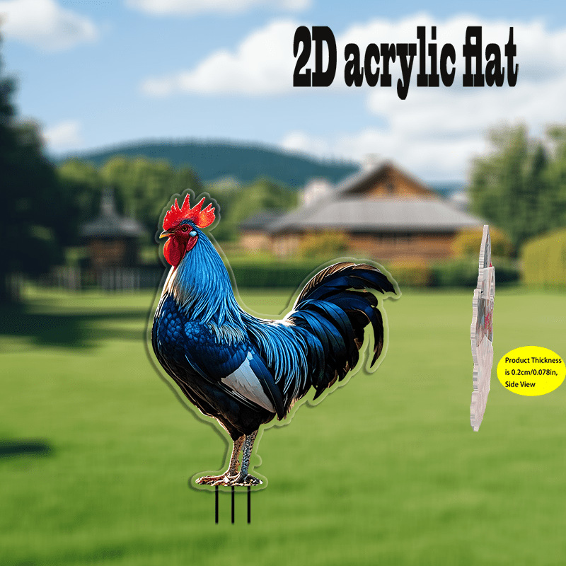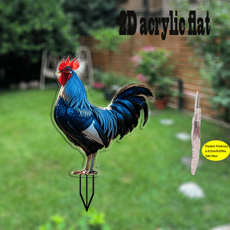 2D フラット、1 個、早起きの鶏アクリル庭装飾地面プラグ、耐候性、休日の草に適しています