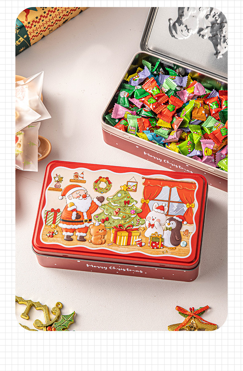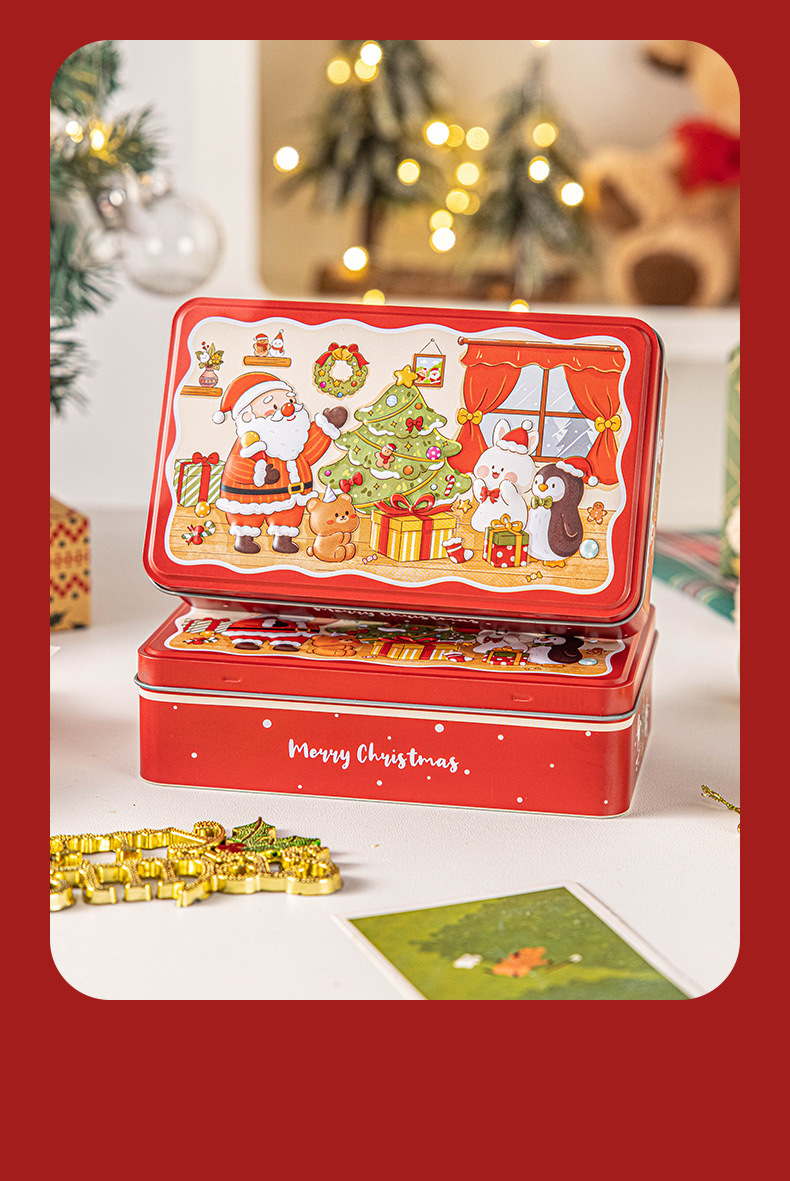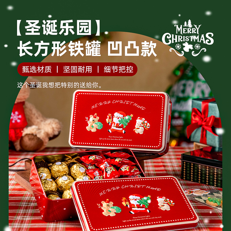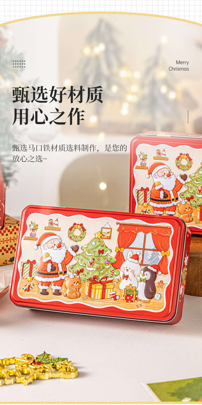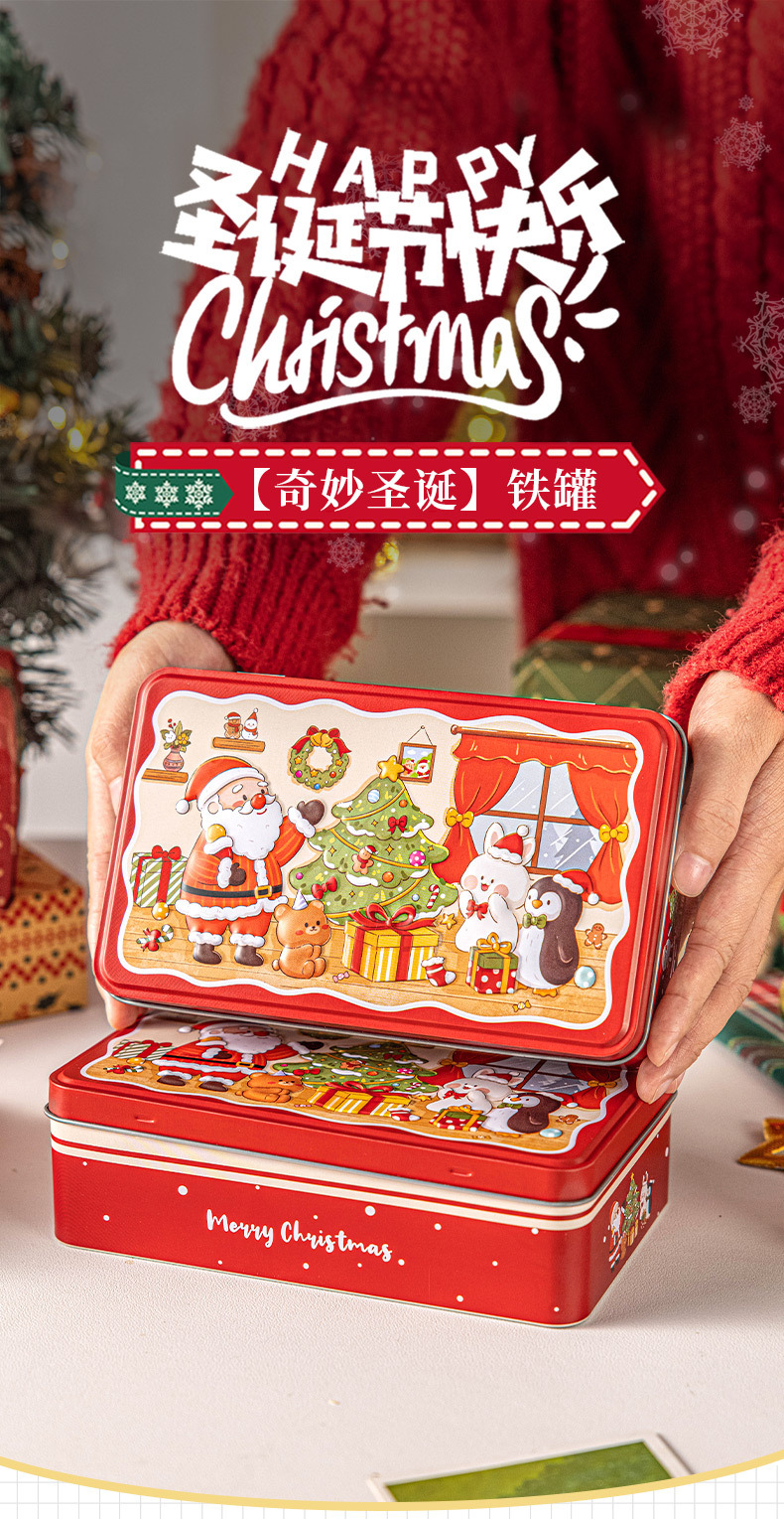 圣诞铁盒糖果零食收纳盒长方形曲奇饼干包装盒儿童礼物礼品空盒