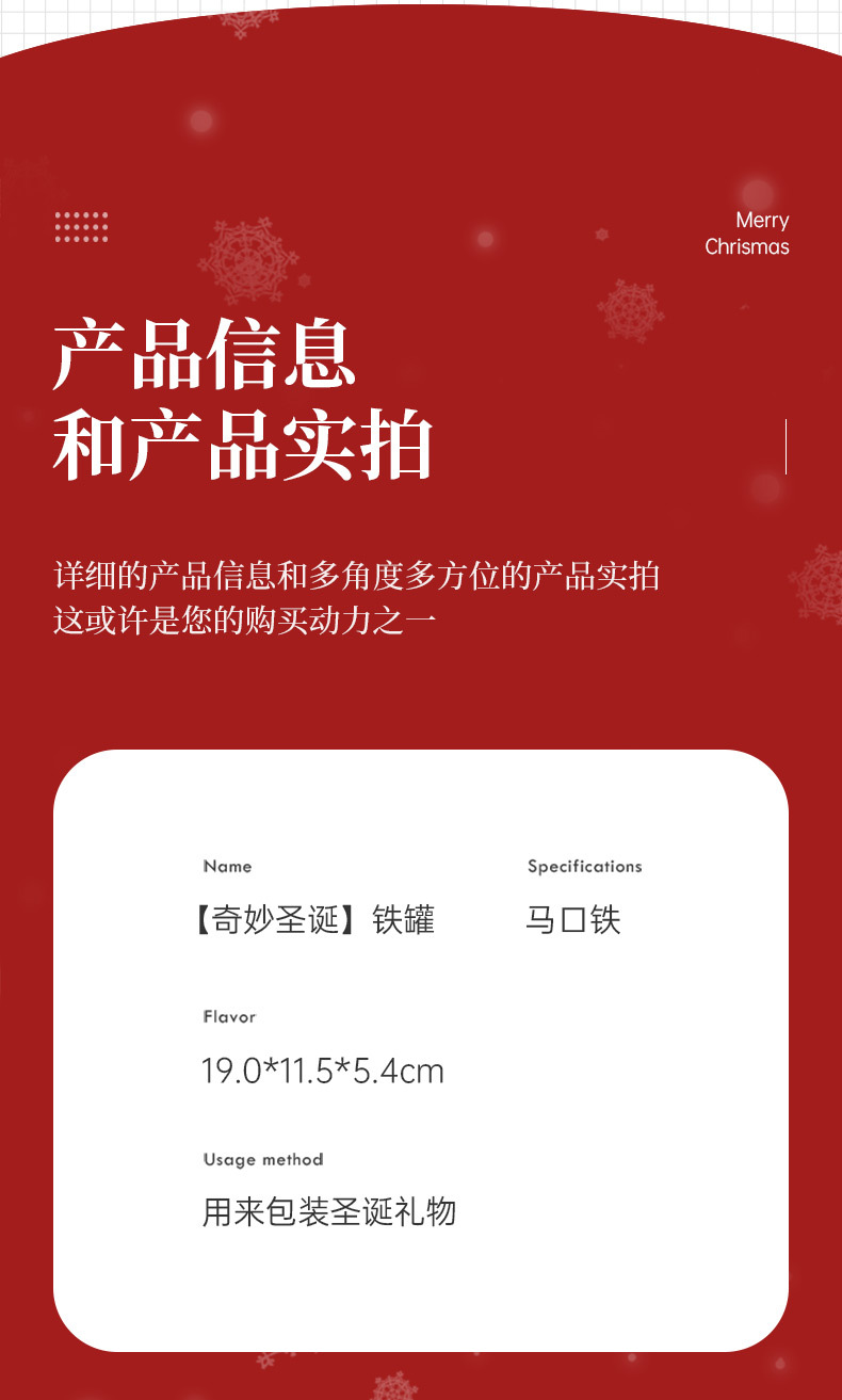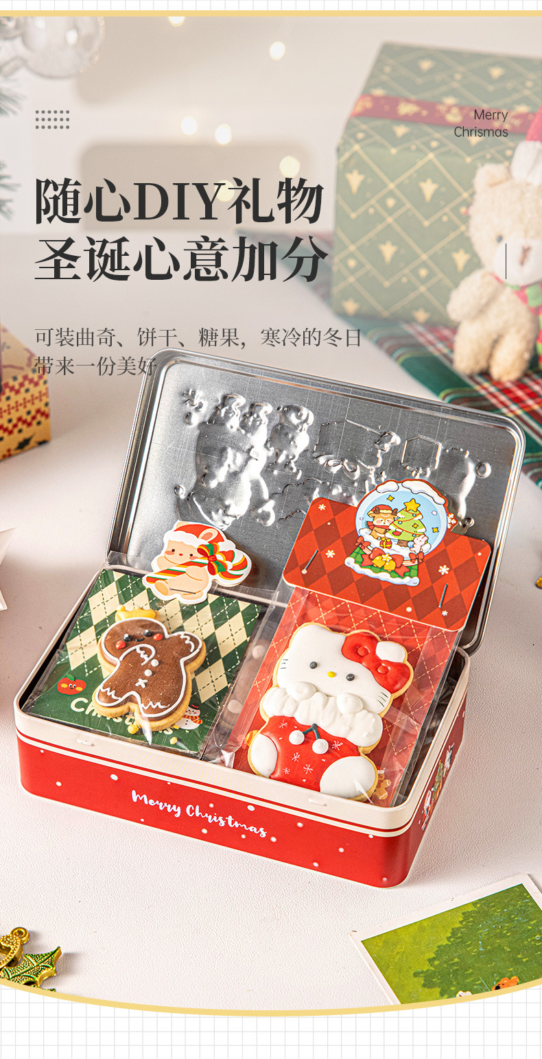 圣诞节曲奇饼干包装铁盒糖果铁罐小盒子马口铁空盒方形礼物收纳罐