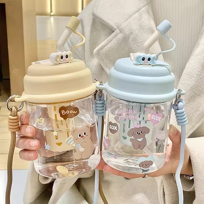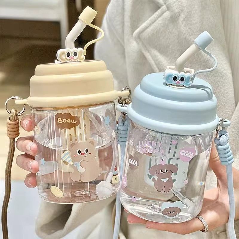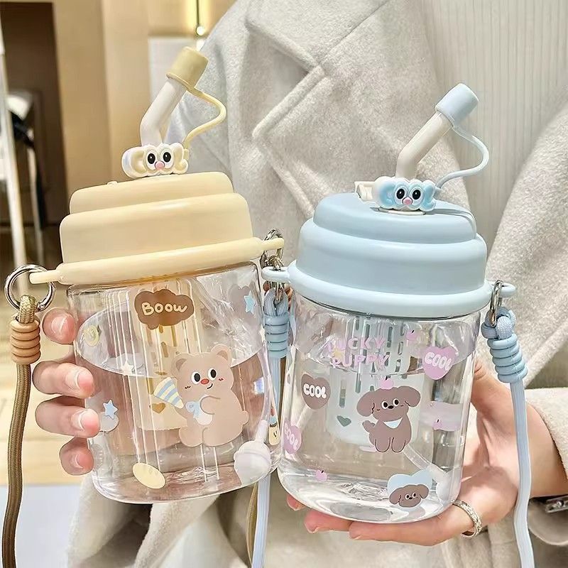 ウォーターカップ 2025 新しい女の子の見栄えの良いプラスチックのかわいいカップポータブルシンプルなアウトドアスポーツストローカップ