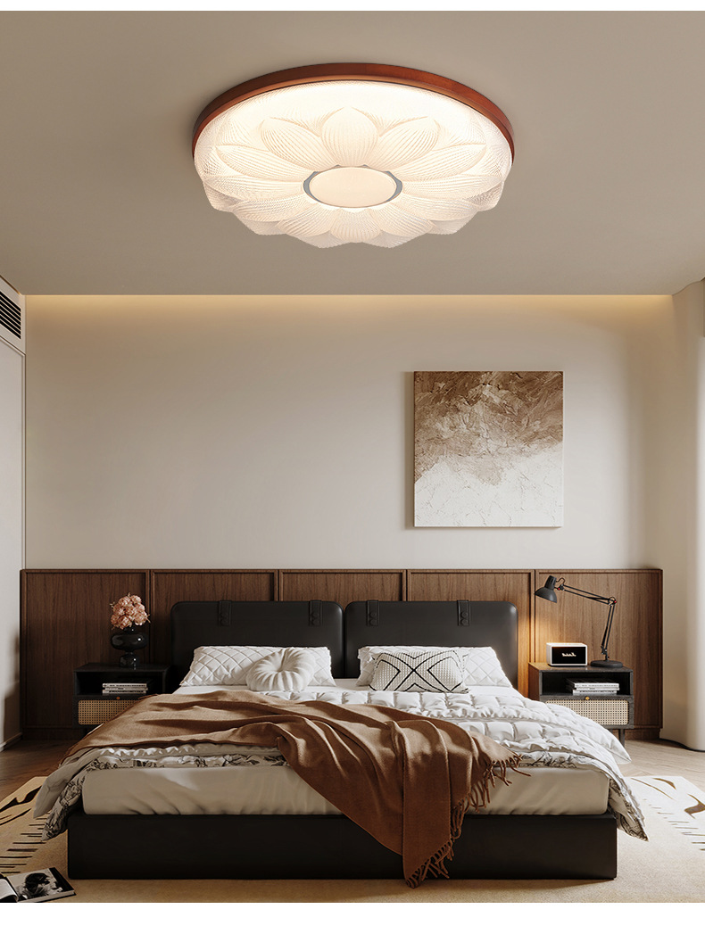 寝室ランプ、シーリングランプ、アンティークスタイル、シンプルモダンなマスターベッドルームランプ、暖かい星空の花、レトロなウォールナットルームランプ