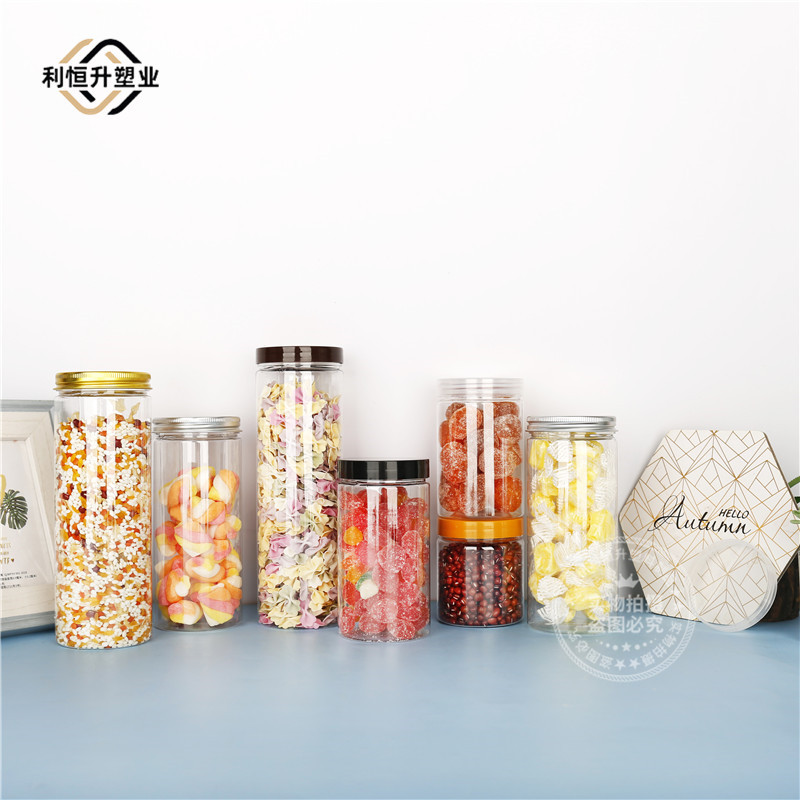 食品グレードの透明なプラスチック瓶空のプラスチックボトルラウンドナッツビスケットキャンディ包装シールスポット卸売
