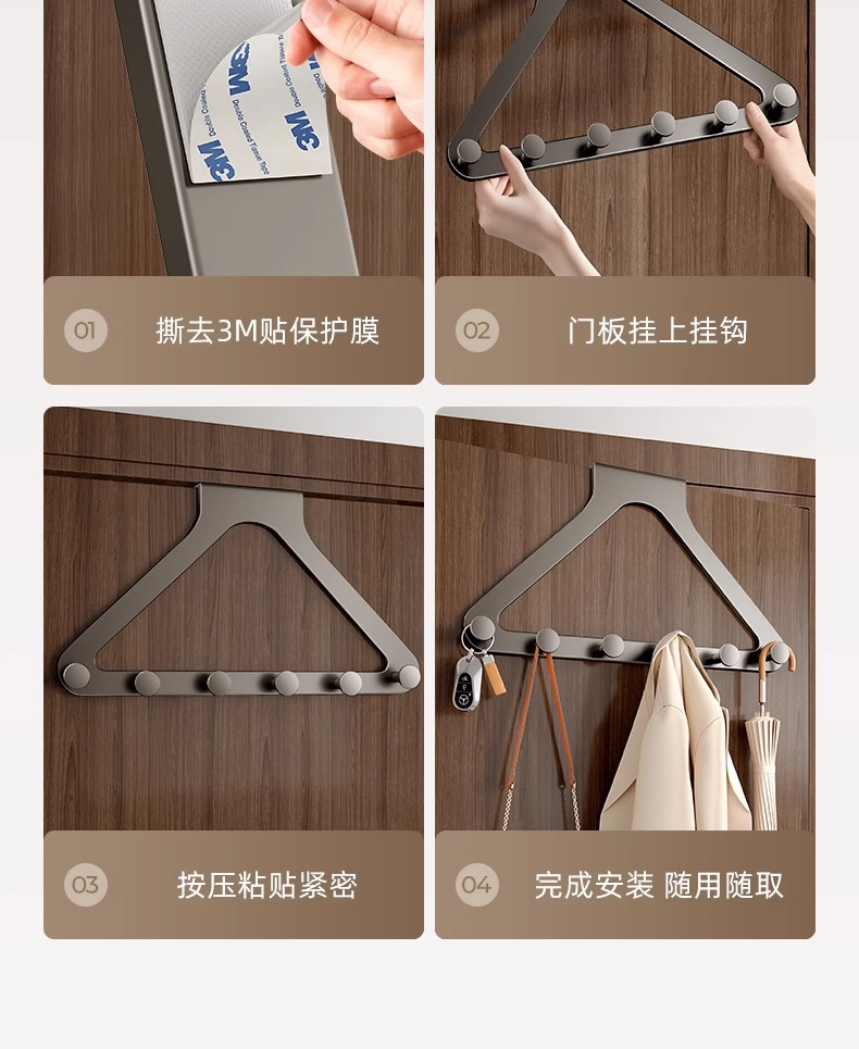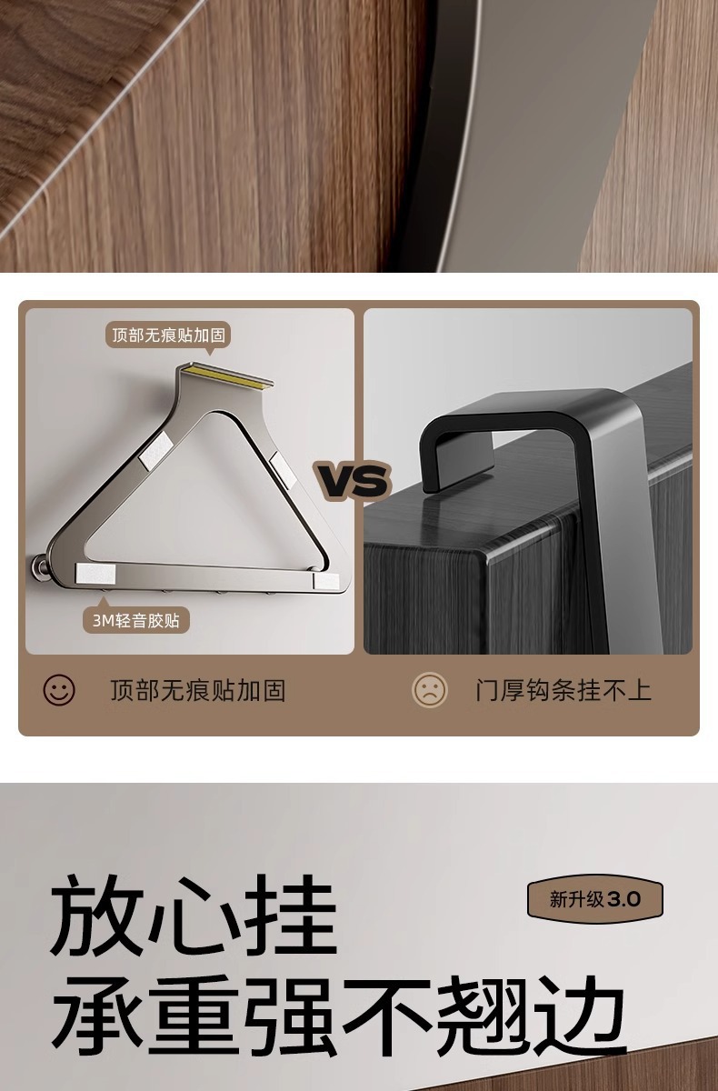 新製品がドアの後ろに設置され、玄関ホールやバスルームのユニバーサル配送に穴を開けずに三角形のフックが一体化されています。