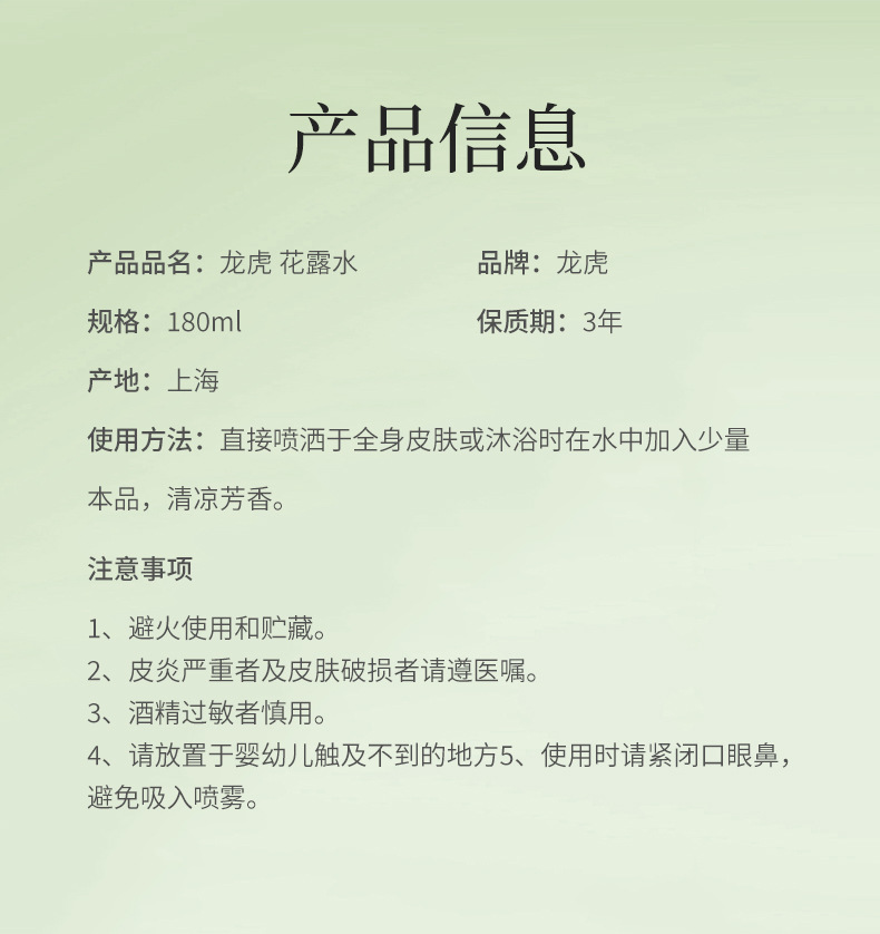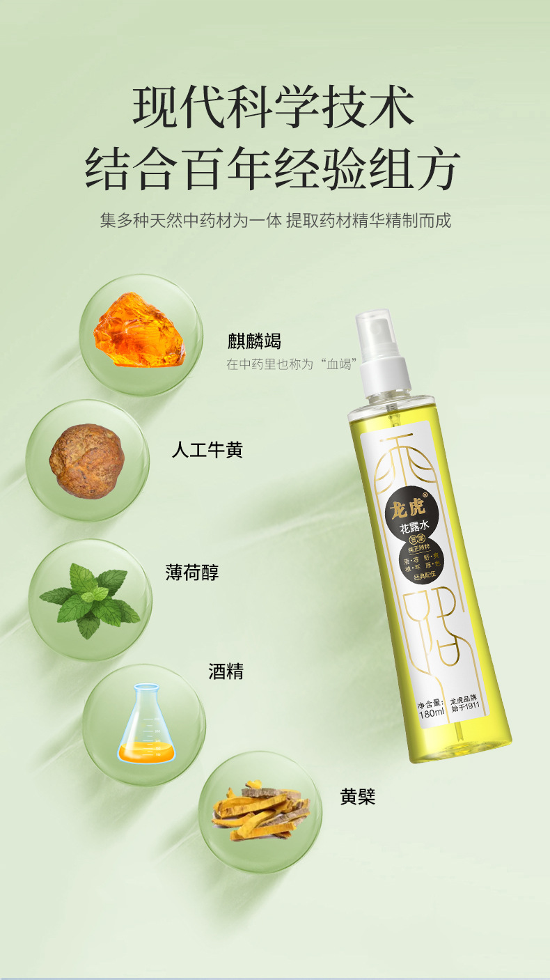 龙虎花露水180ml驱蚊喷雾止痒花露水快速止痒清新家庭户外防蚊虫