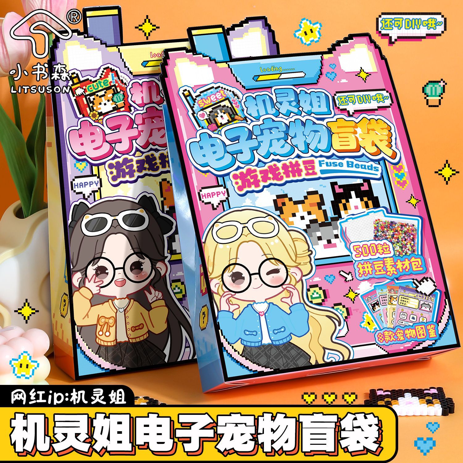 机灵姐电子宠物拼豆材料包手工diy拼豆豆趣味拼豆图纸立体融合豆