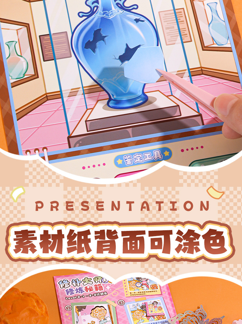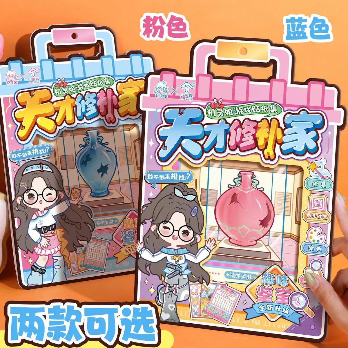 新款机灵姐天才修补家免裁剪儿童安静书diy手账立体装饰涂色贴画