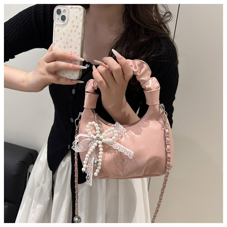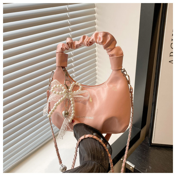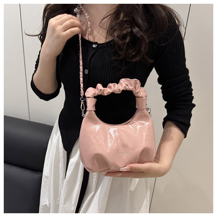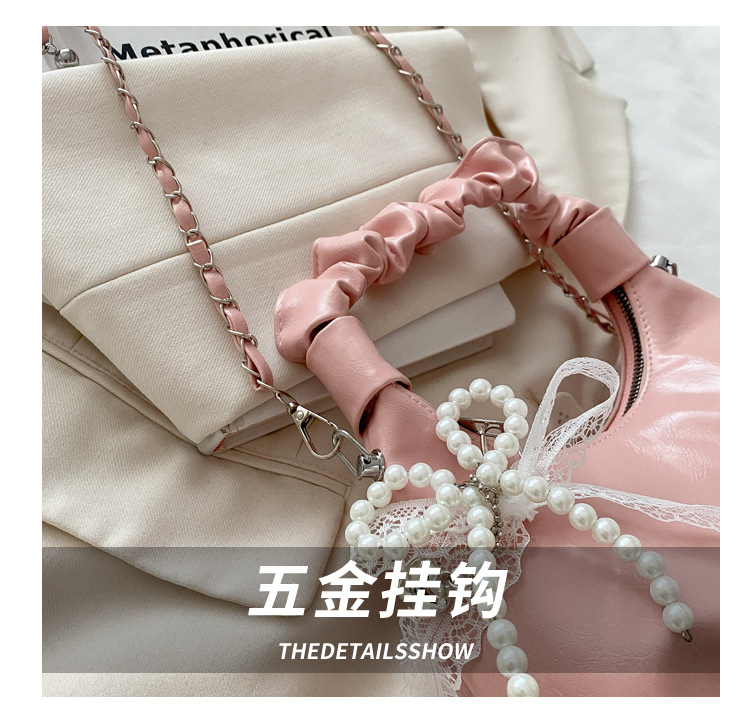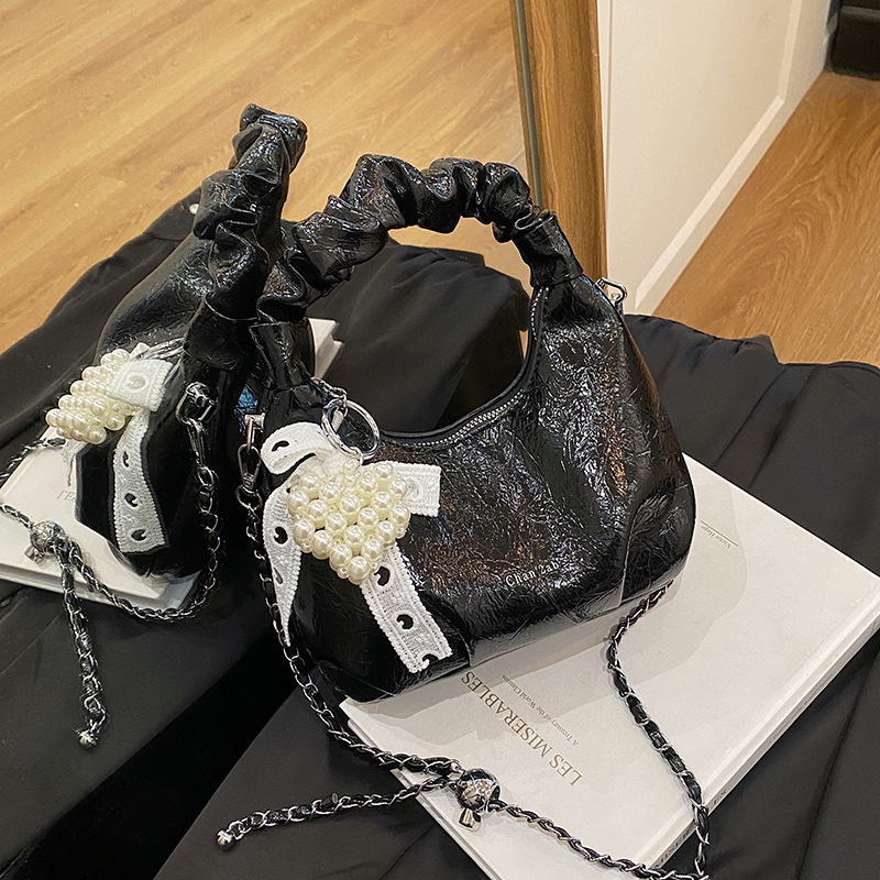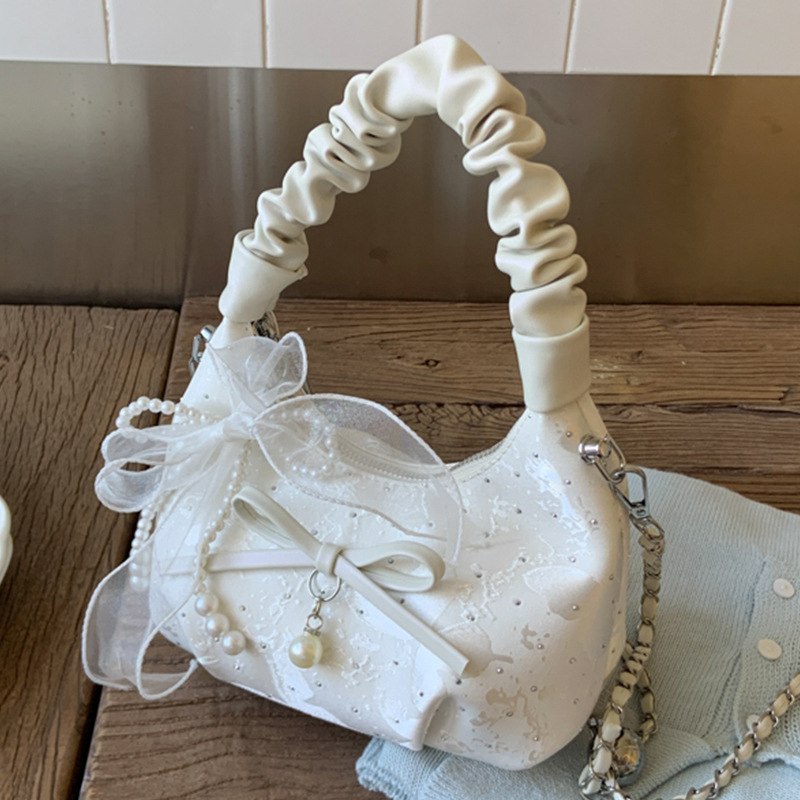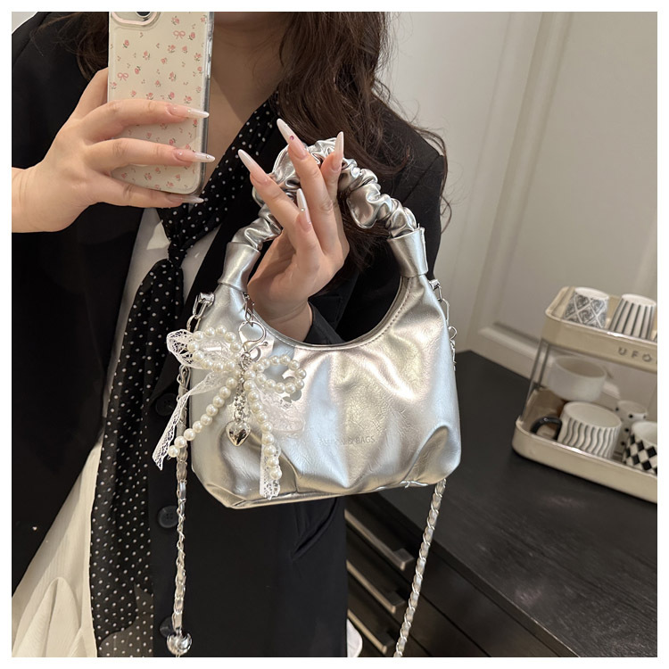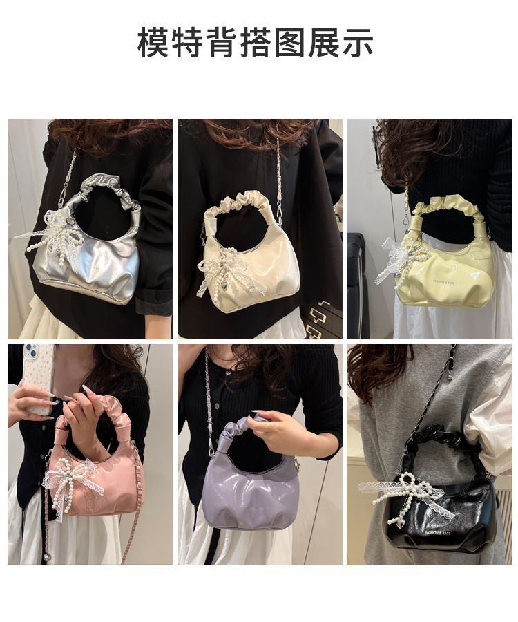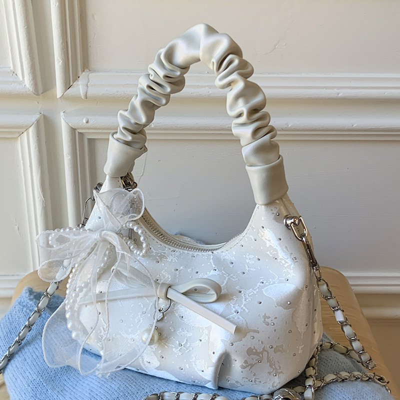 2026早春褶皱手提包包女新款小众百搭镶钻休闲链条单肩斜挎包水饺