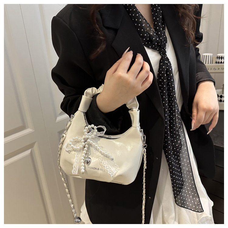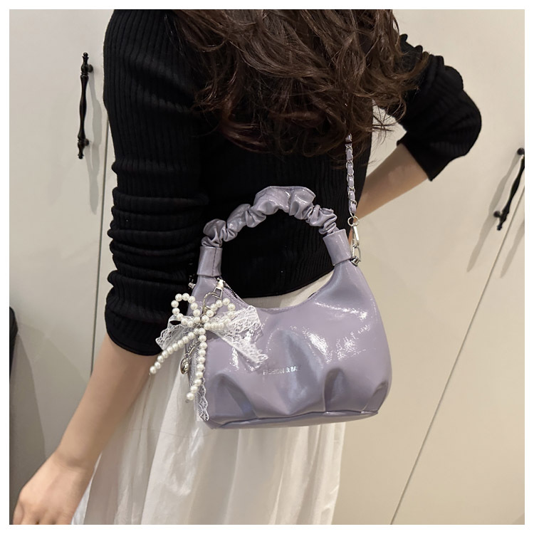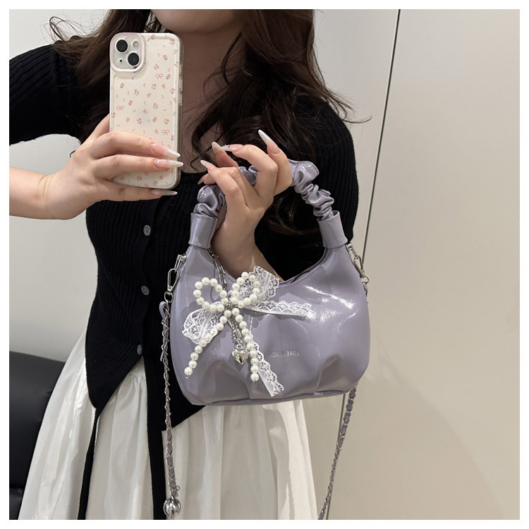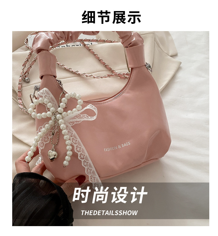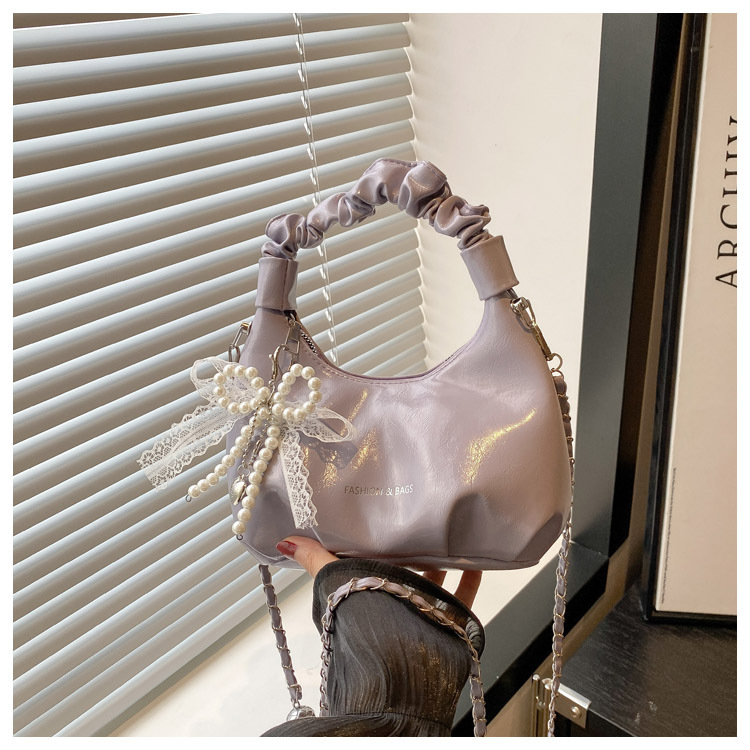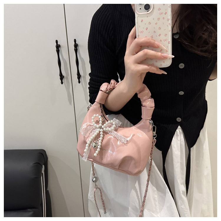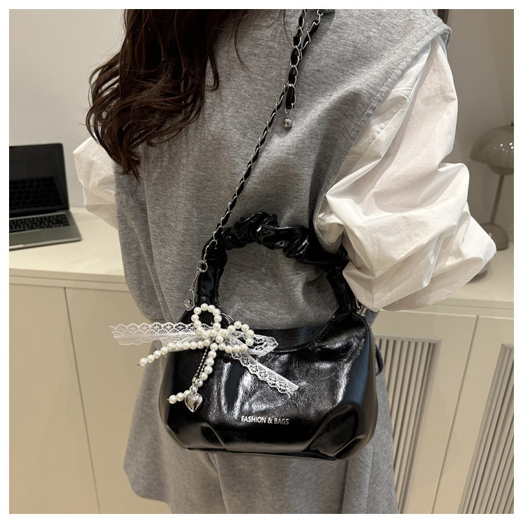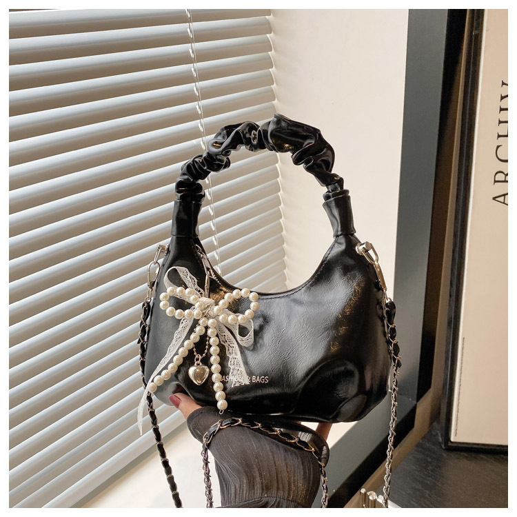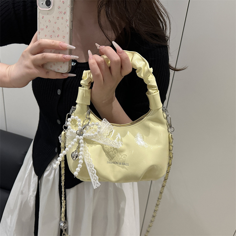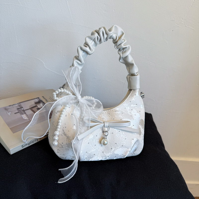 2026早春褶皱手提包包女新款小众百搭镶钻休闲链条单肩斜挎包水饺