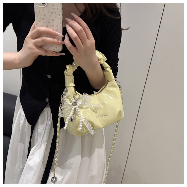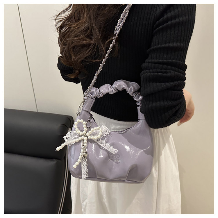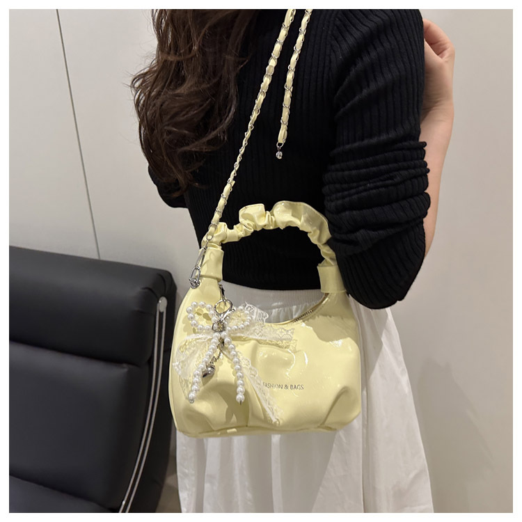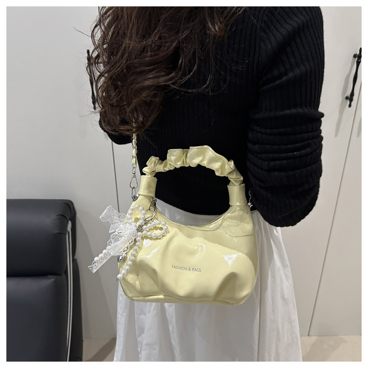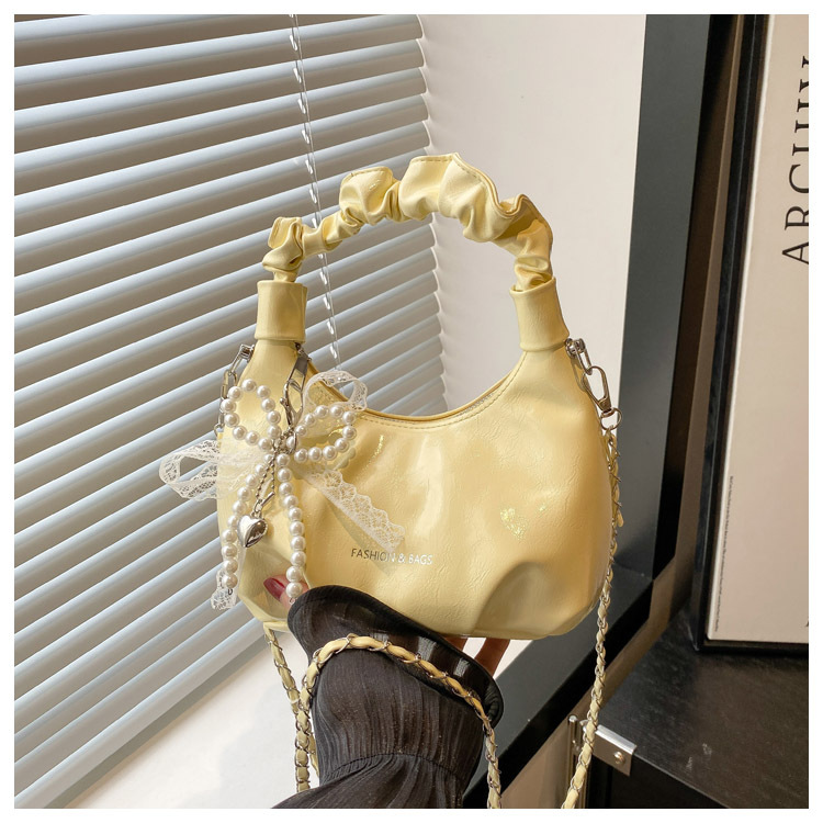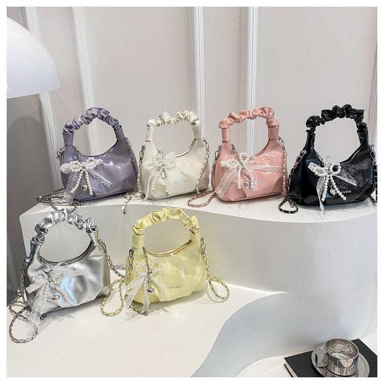 ビーズリボンソリッドカラー 2025 新しいカジュアルシンプルなデザインチェーンプリーツ仕事小さなハンドバッグ女性のための