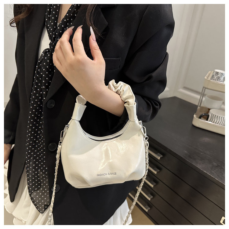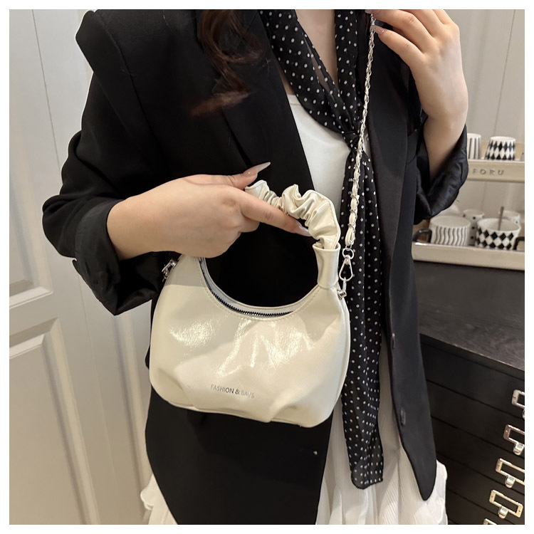 手提包包女2025夏季新款小众设计链条斜挎包褶皱饺子包上班小拎包