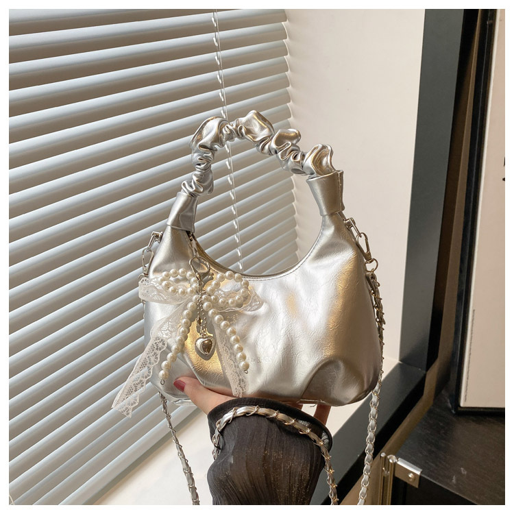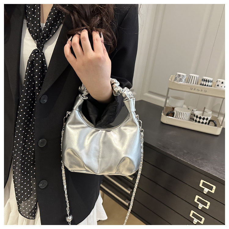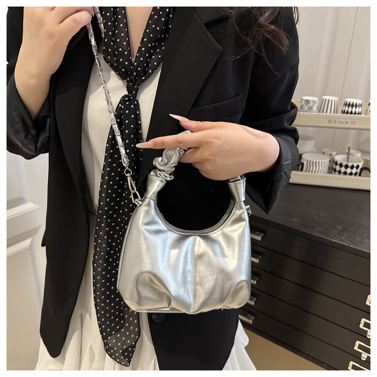 銀色のしわの手提げの小さい包みの女性の2025夏の新型のギョーザの包みの百合の洋派のチェーンの通勤の斜めの包みのバッグ