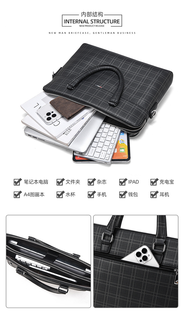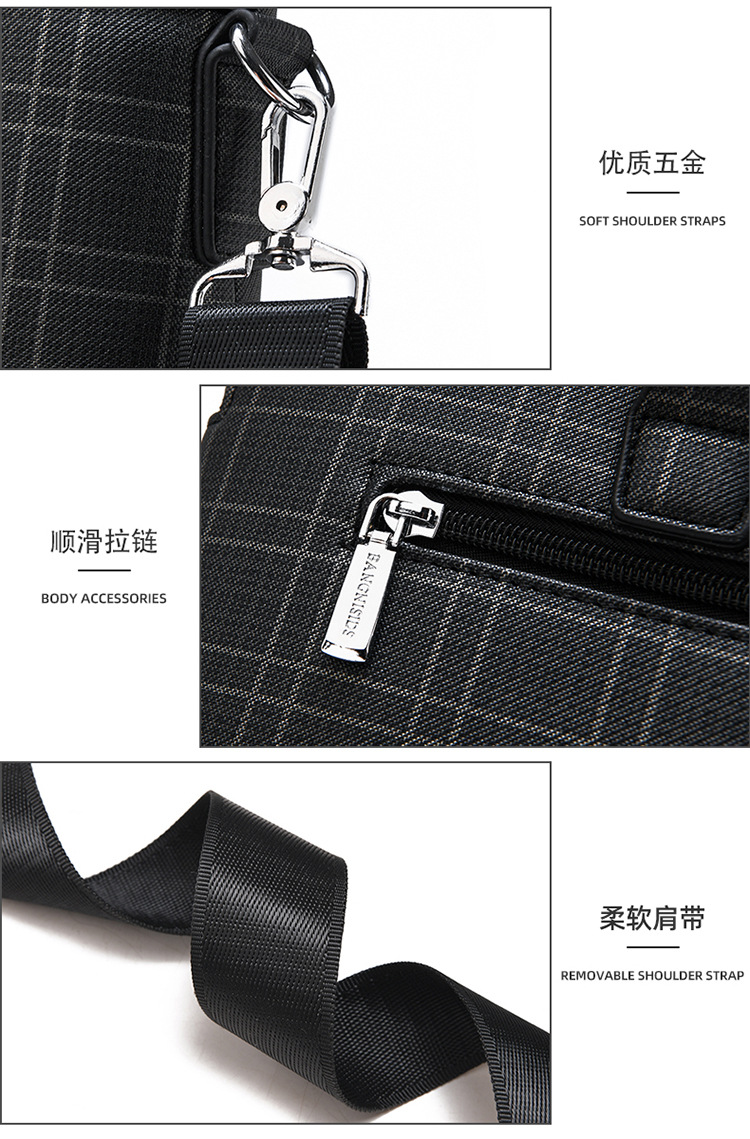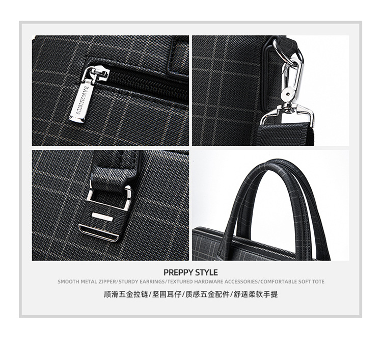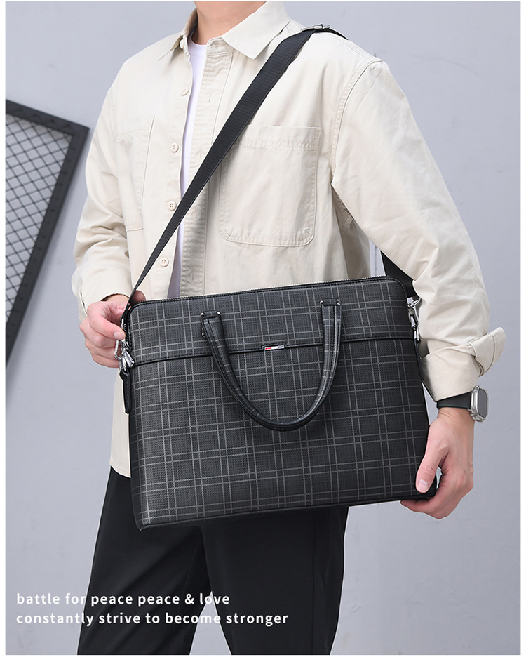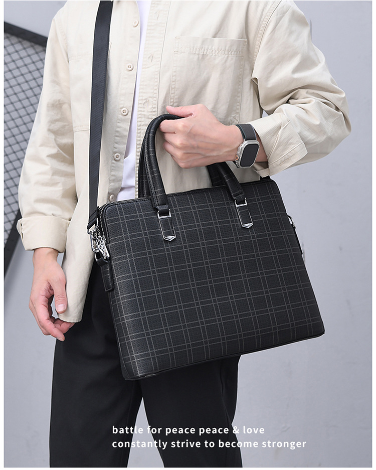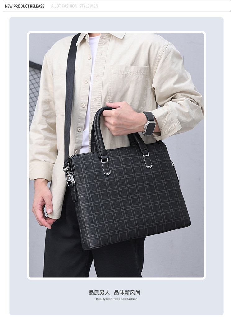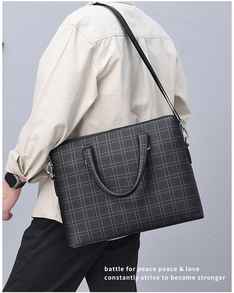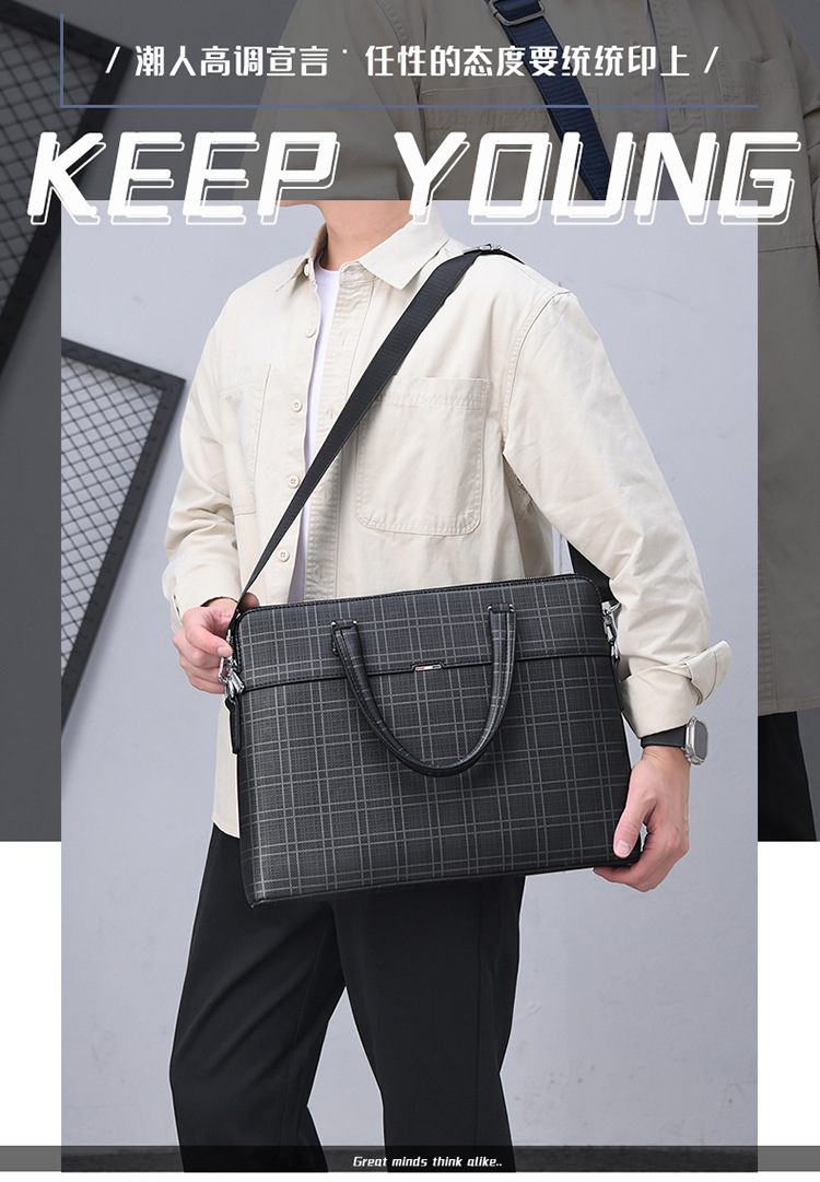 韓国ファッションビジネスメンズバッグメンズブリーフケース大容量チェック柄パソコンバッグショルダーバッグ斜め掛けハンドバッグ