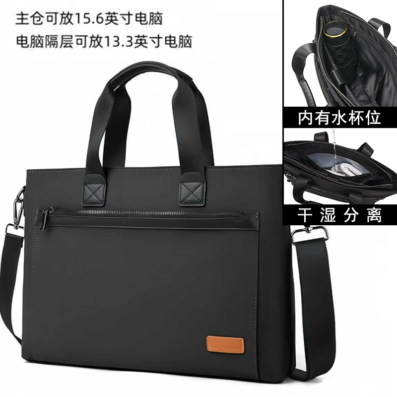 新款大容量男士牛津布纯色手提包通勤公文包男可收纳笔记本电脑包