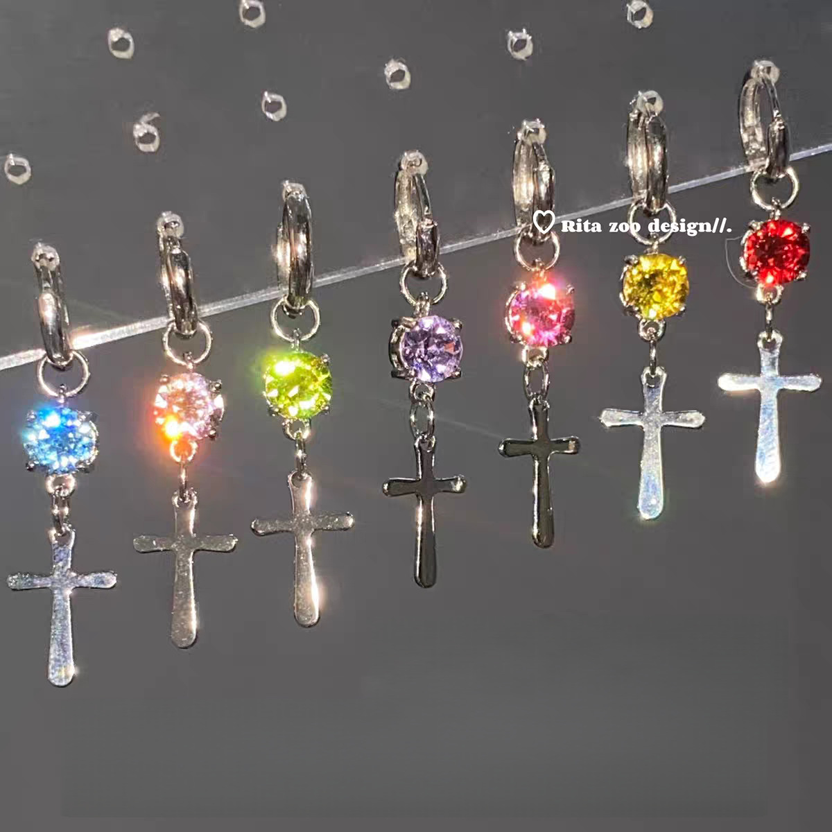 【Rita Zoo】12色施家华子十字架!简约欧美风个性彩钻耳环耳饰