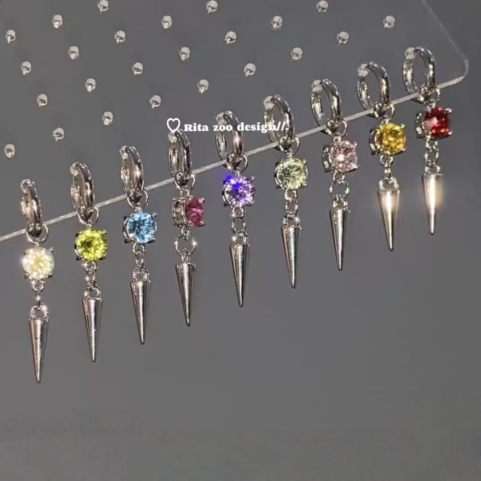 超闪立体辣妹尖椎手作款吊坠耳圈个性氛围感精致闪钻耳环耳饰