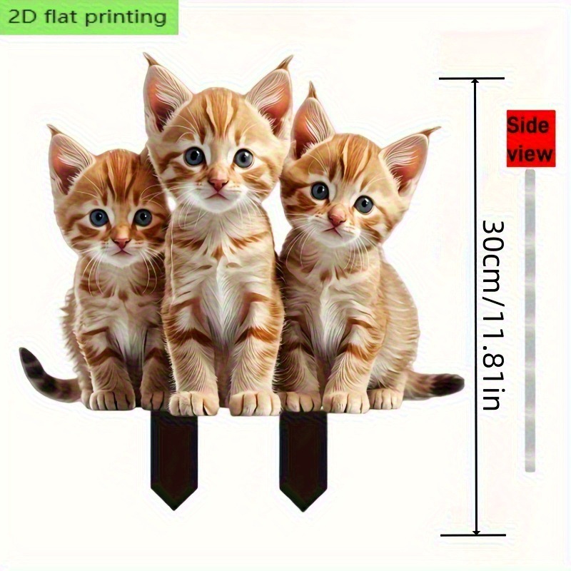 2D フラット、アクリル動物スタイルの装飾的なフロアプラグ 1 個、庭に適したかわいい 3 つの子猫のフロアプラグ