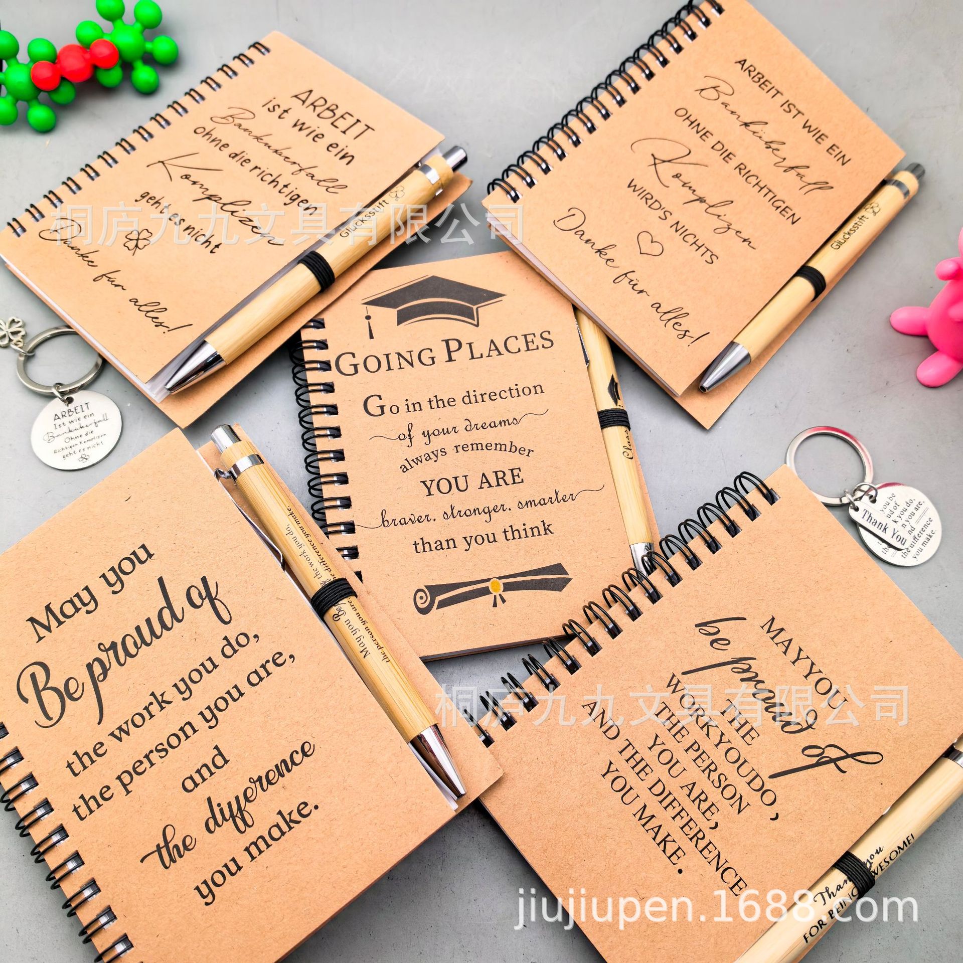 Temuアマゾンクロスボーダー環境保護竹製押し入れボールペン励ましの言葉本キーホルダーセット