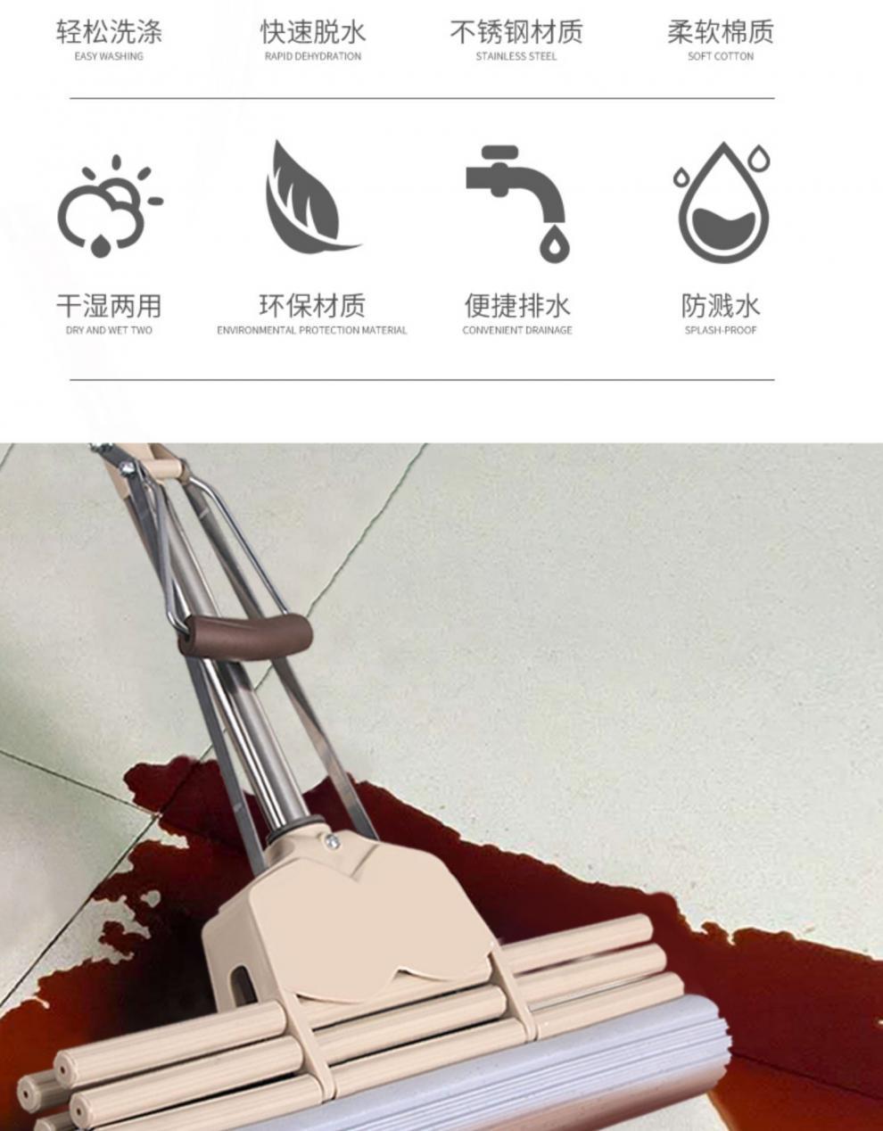 グッドワイフ公式スポンジモップ家庭用大型水絞りローラー超吸収性、手洗い不要、耐久性