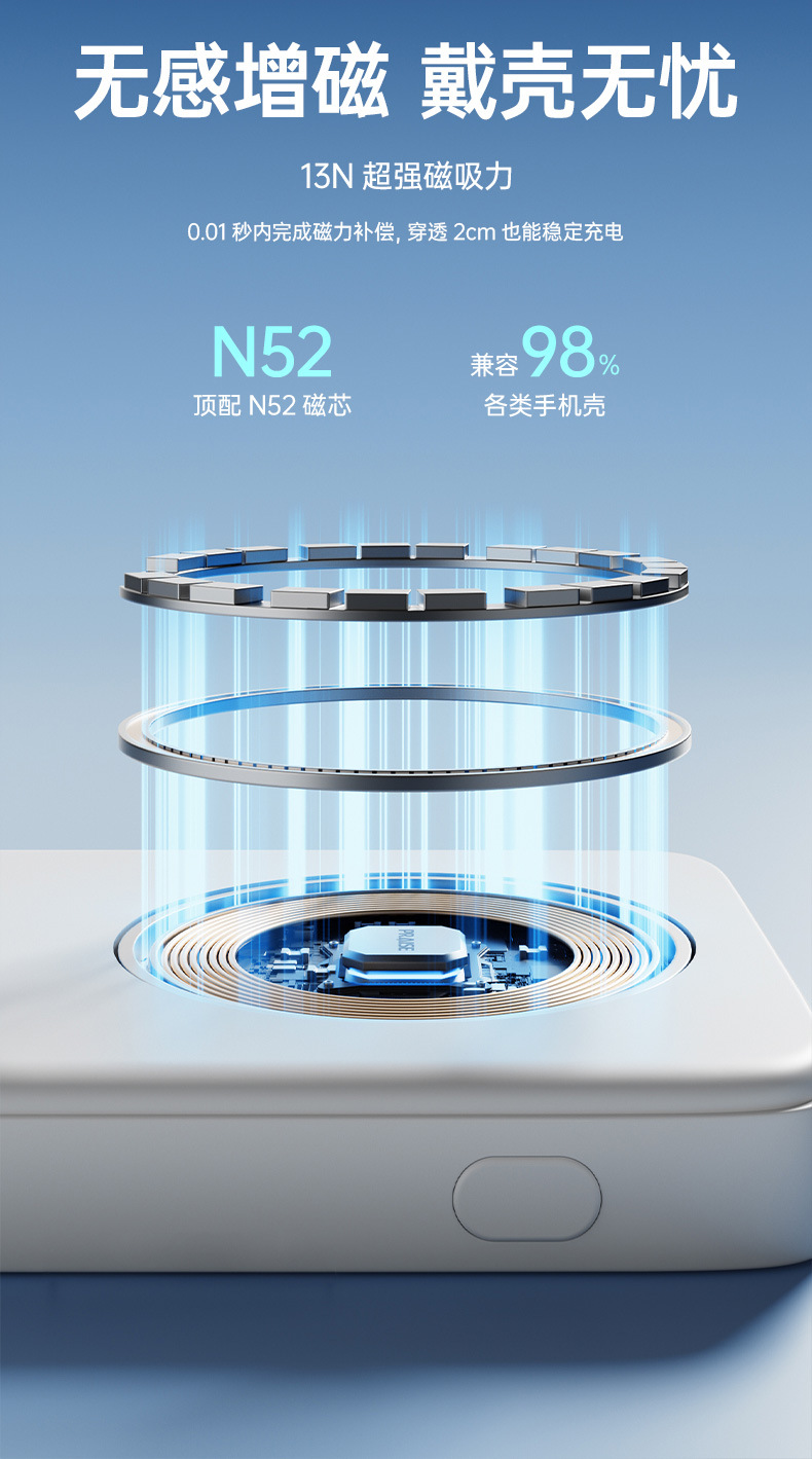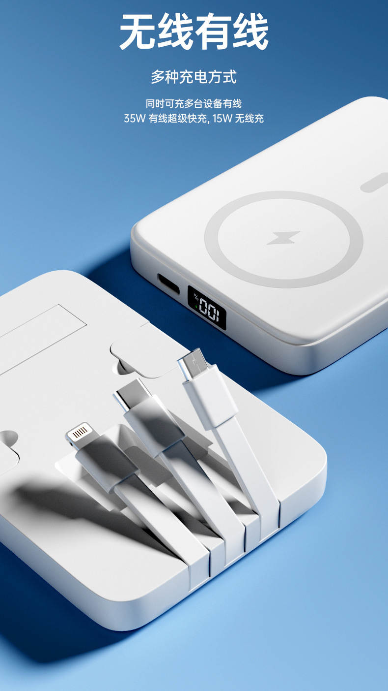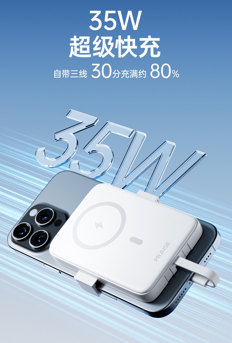 コンパクトでポータブル,磁気吸引力,データケーブルが付属しています,急速充電をサポート