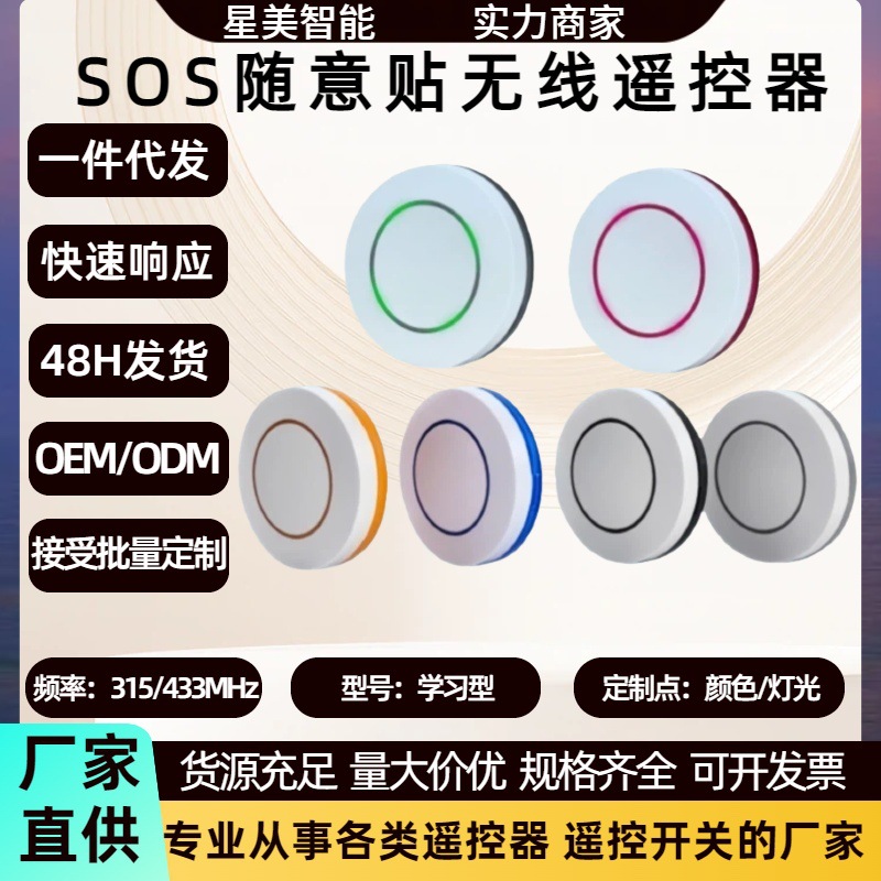 SOSランダムステッカー付き丸型スイッチ、アクセス制御リモコン、LEDライトリモコン、シングルキー86パネルリモコン、433m