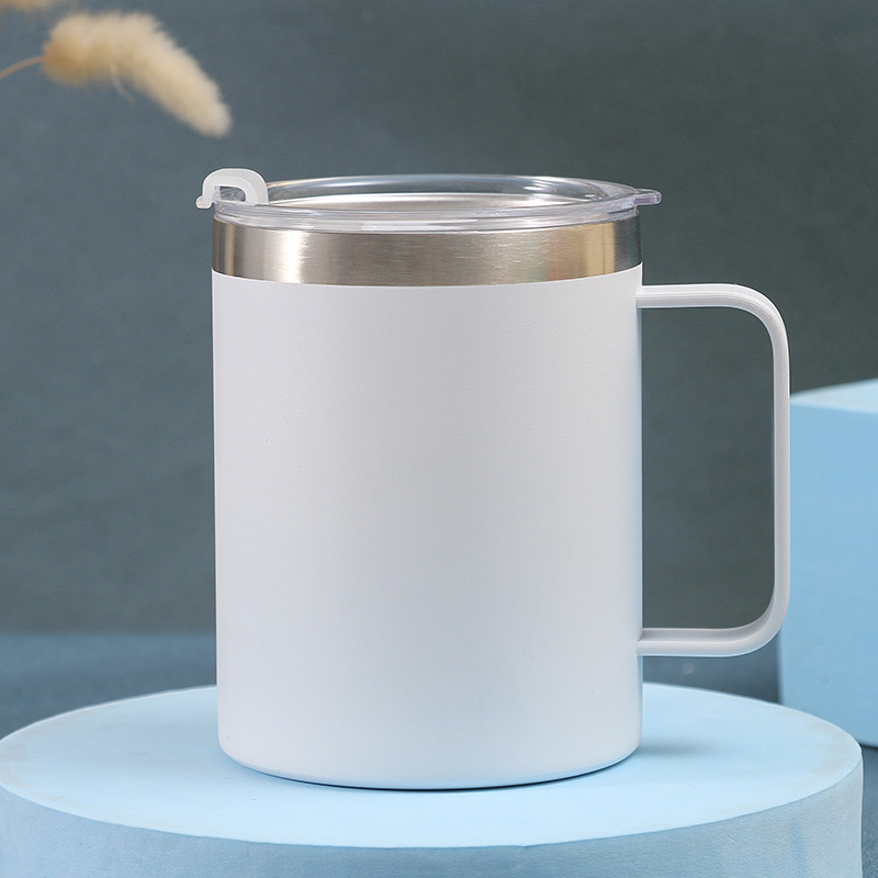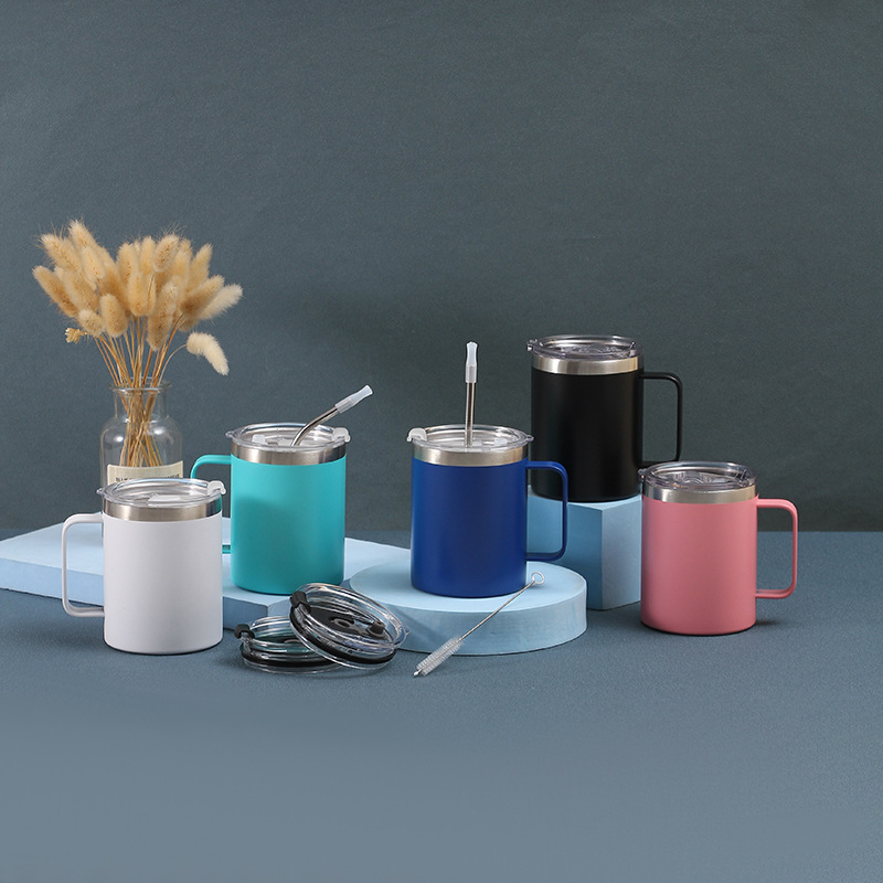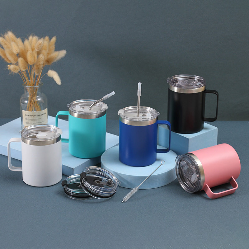 跨境12oz不锈钢马克杯办公带手柄吸管杯户外车载真空保温杯批发