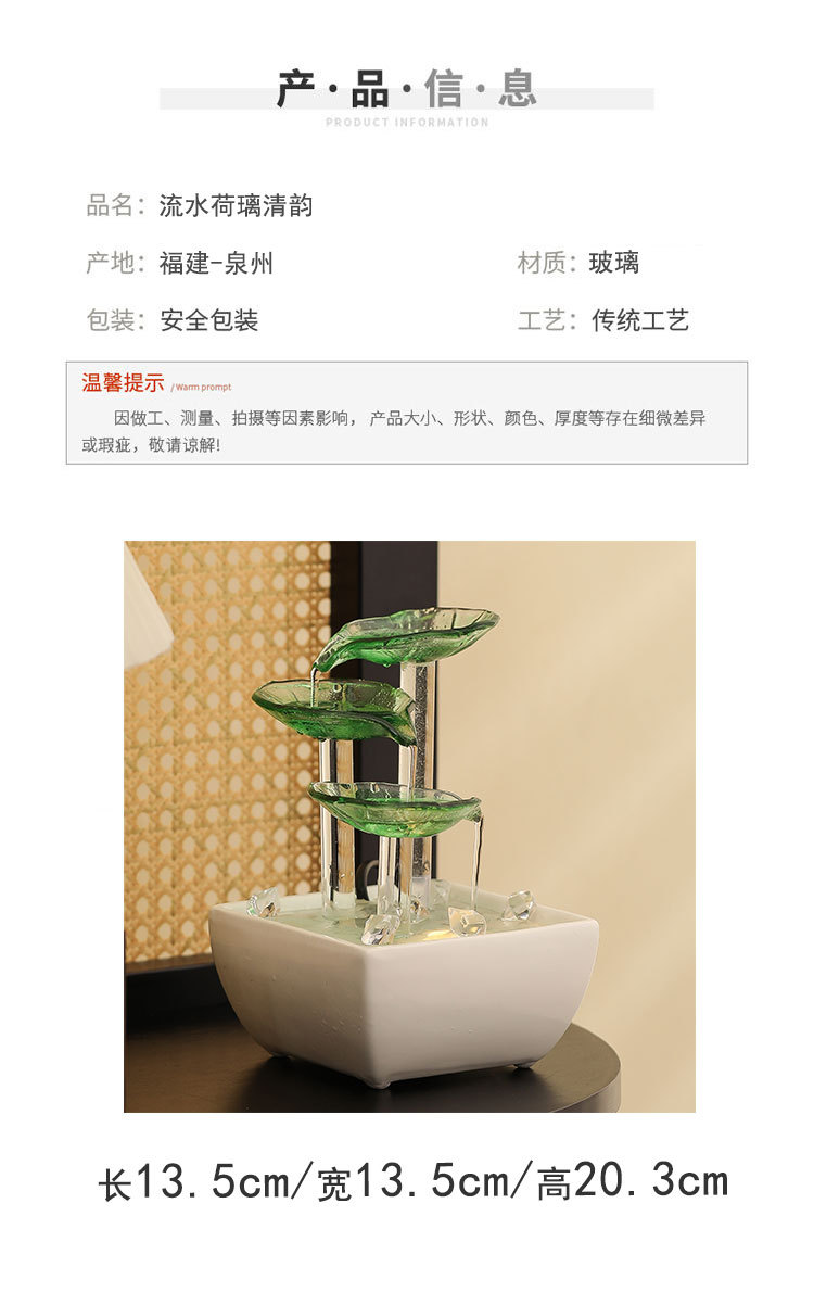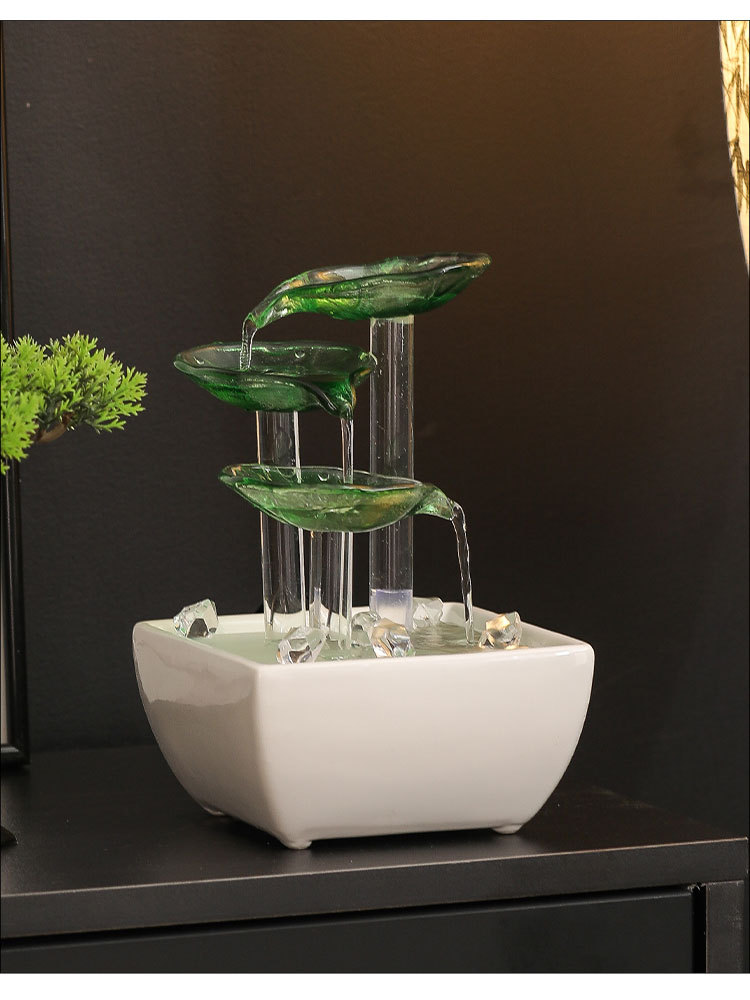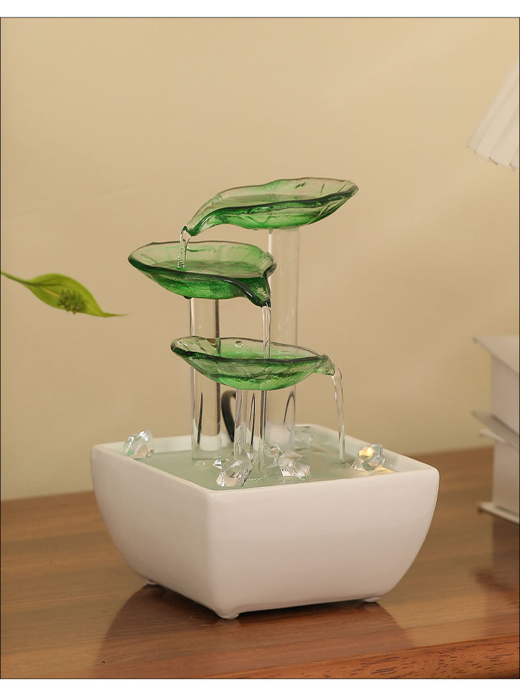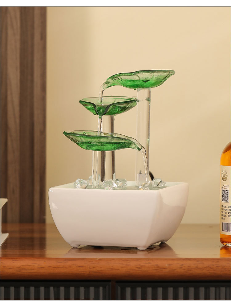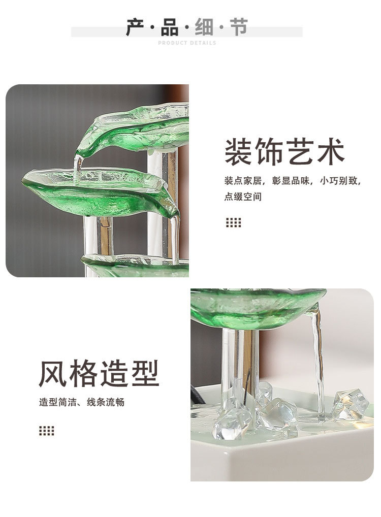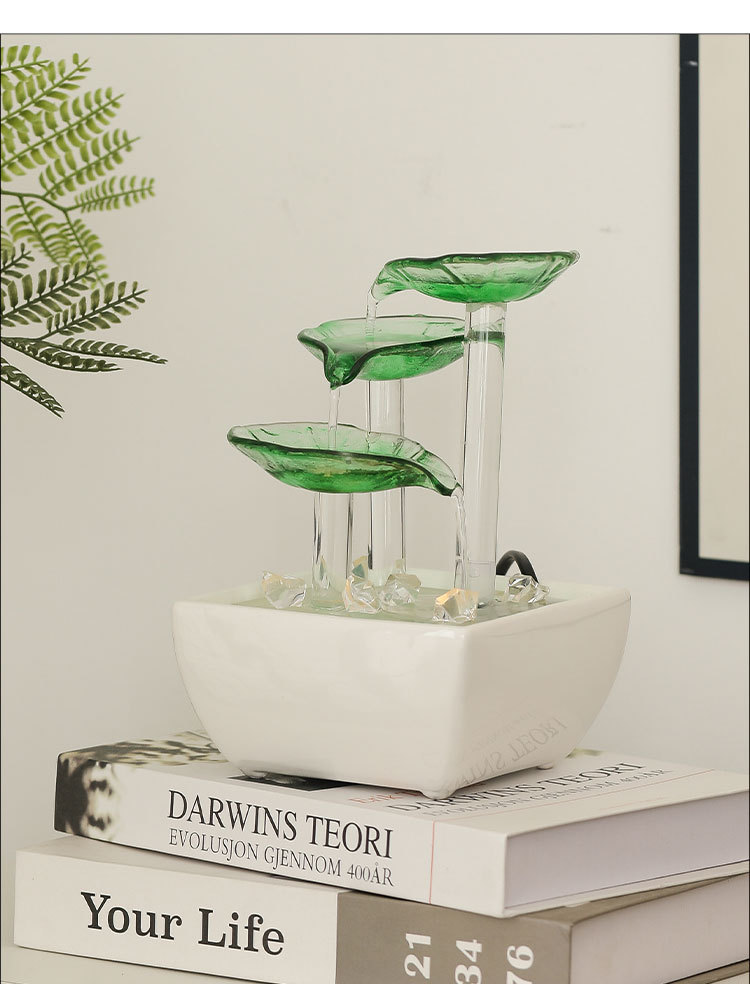 ガラスの蓮の葉と流れる水の富の装飾品、モダンな家庭用水循環富の装飾、テレビキャビネット、玄関の噴水、小型