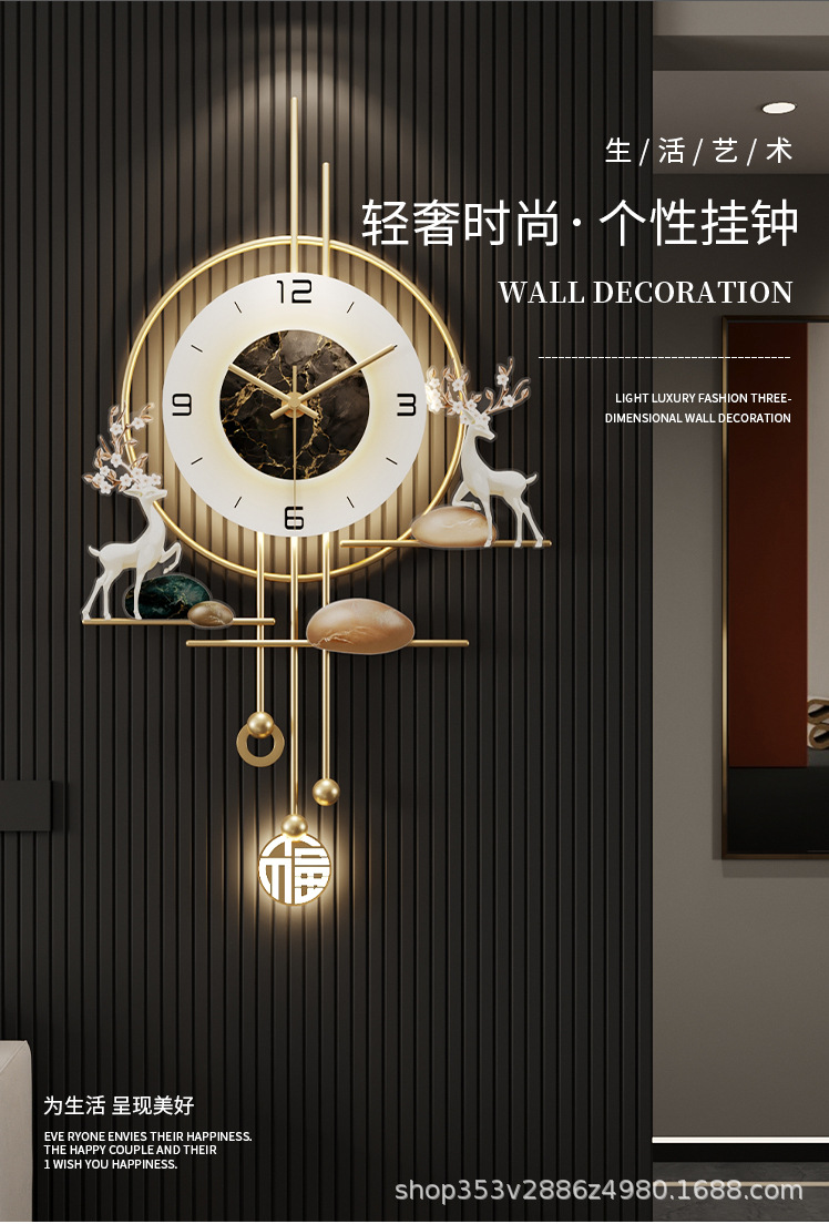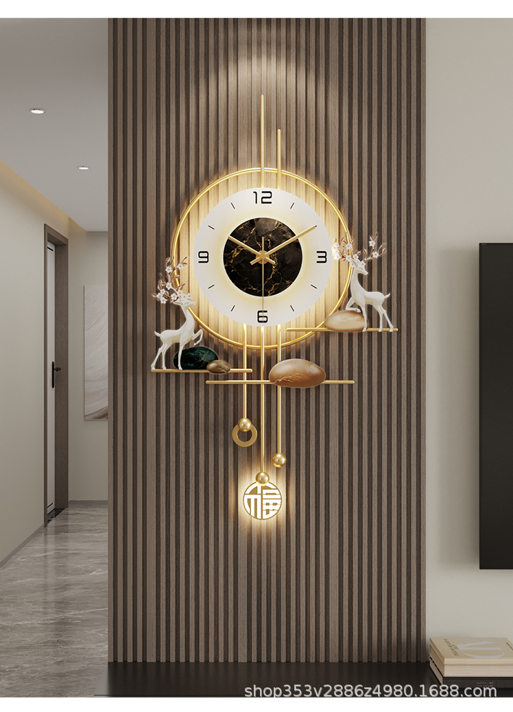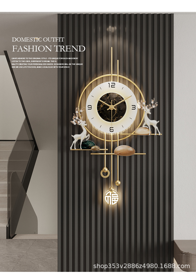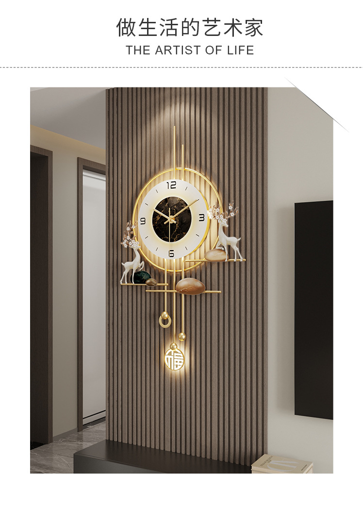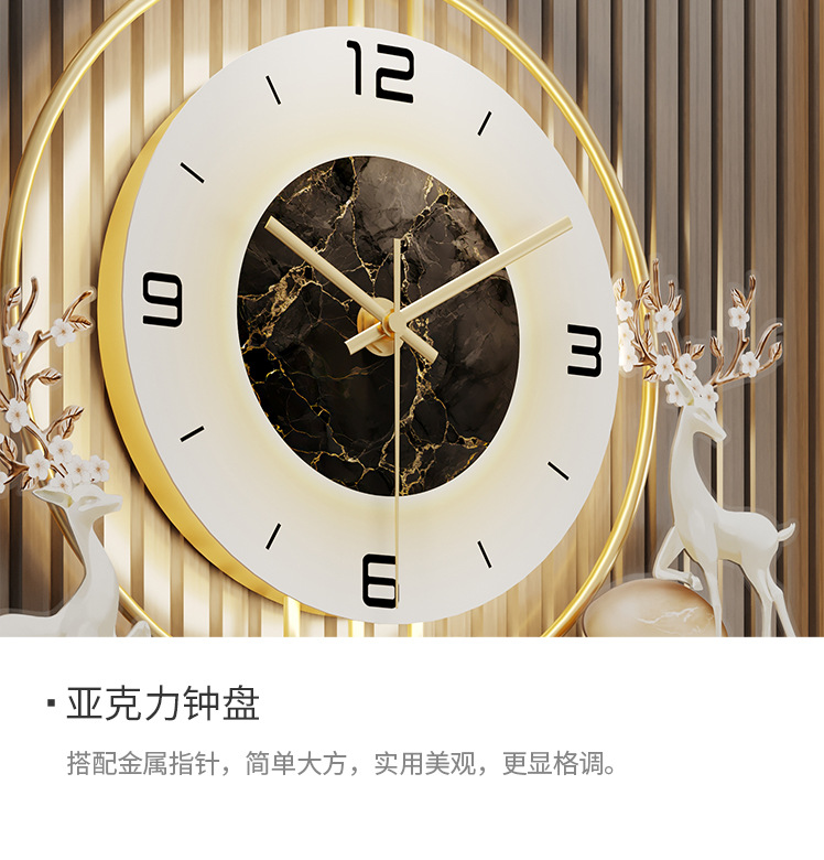 高级感时钟挂墙2025新款客厅钟表挂钟创意轻奢福鹿装饰木格栅挂表
