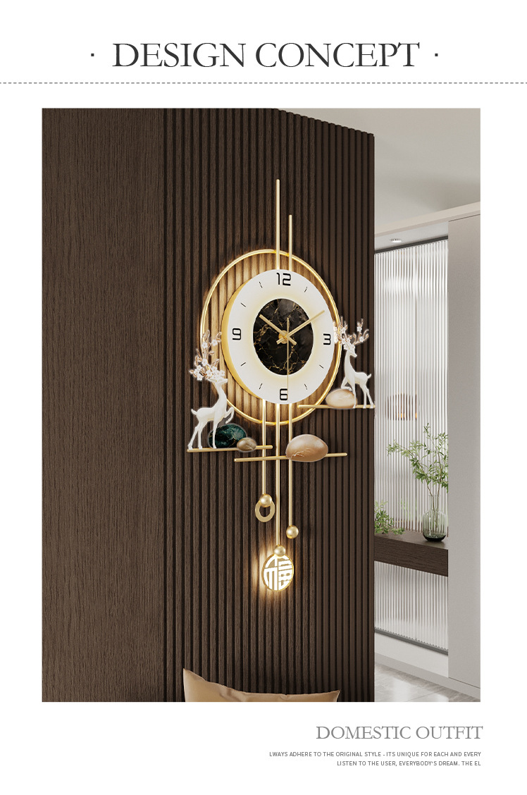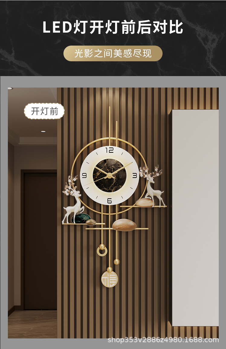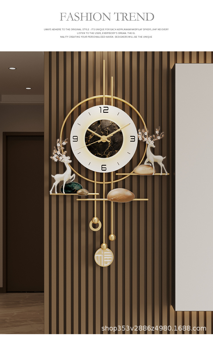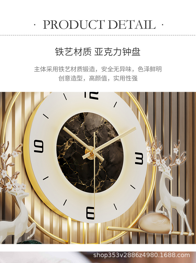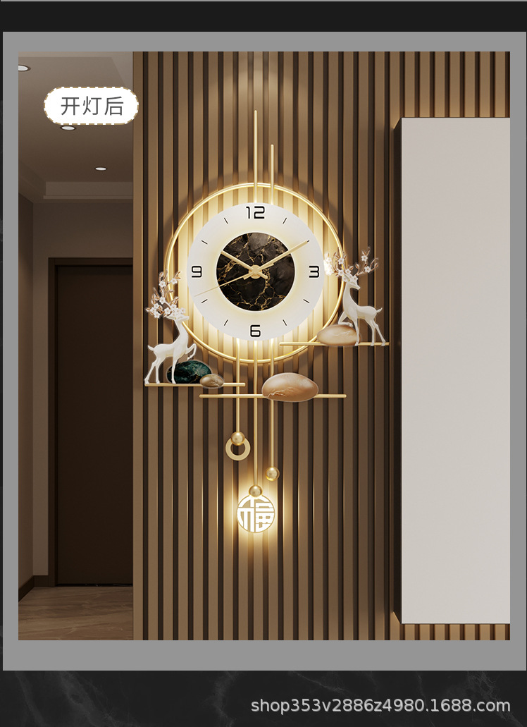 高级感时钟挂墙2025新款客厅钟表挂钟创意轻奢福鹿装饰木格栅挂表