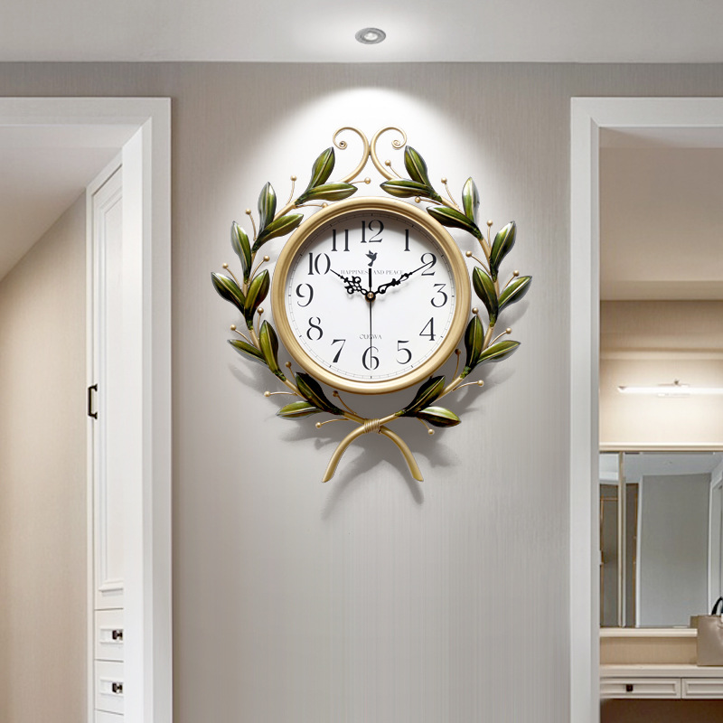 *卸売ヨーロッパスタイルの金属プレートスイングミュート壁時計リビングルーム寝室パーソナライズされたクリエイティブファッション装飾クォーツ時計