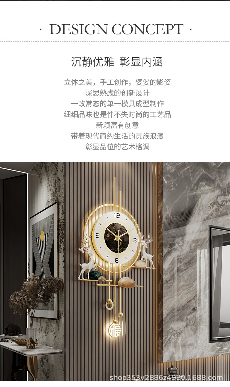 新しいスイング壁時計リビングルームの壁時計新しい時計壁掛けモダンシンプルクリエイティブな雰囲気ライト高級ホームミュート