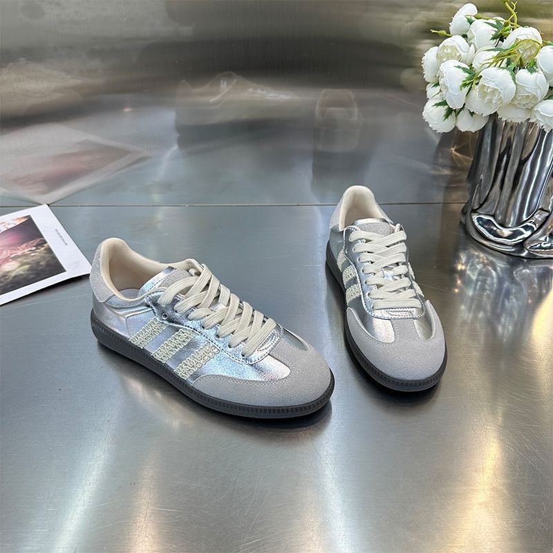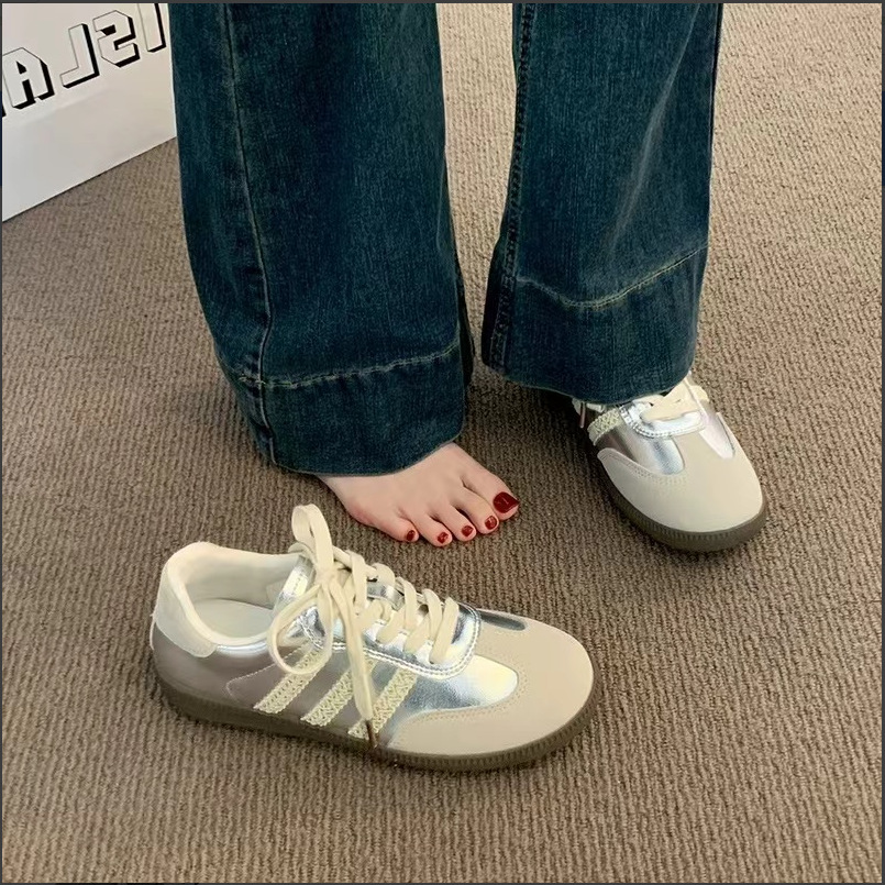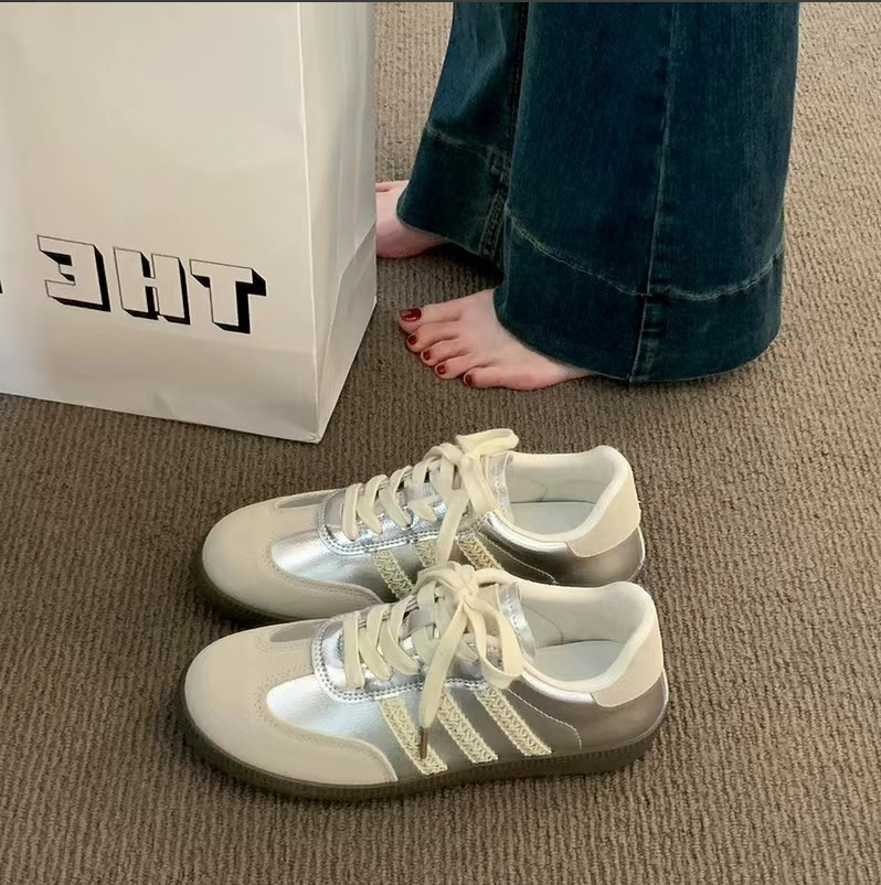 シルバー道徳トレーニングシューズ女性のための 2025 春夏新ソフトソールレトロフラットレースアップフォレストスポーツスニーカーイントレンド