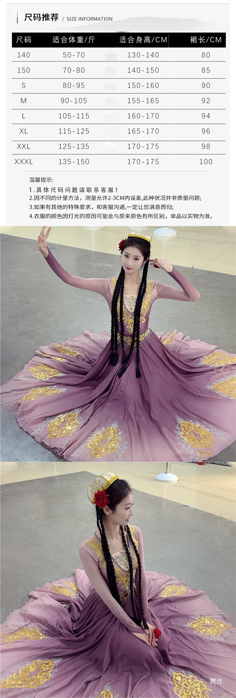 新しい新疆ダンス衣装ウイグルダンス衣装大きなスイングスカート練習スカートドラマ芸術試験パフォーマンス