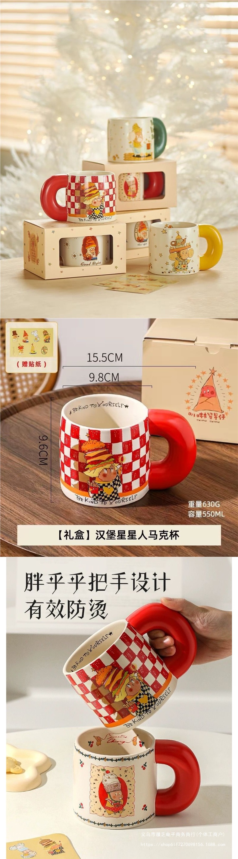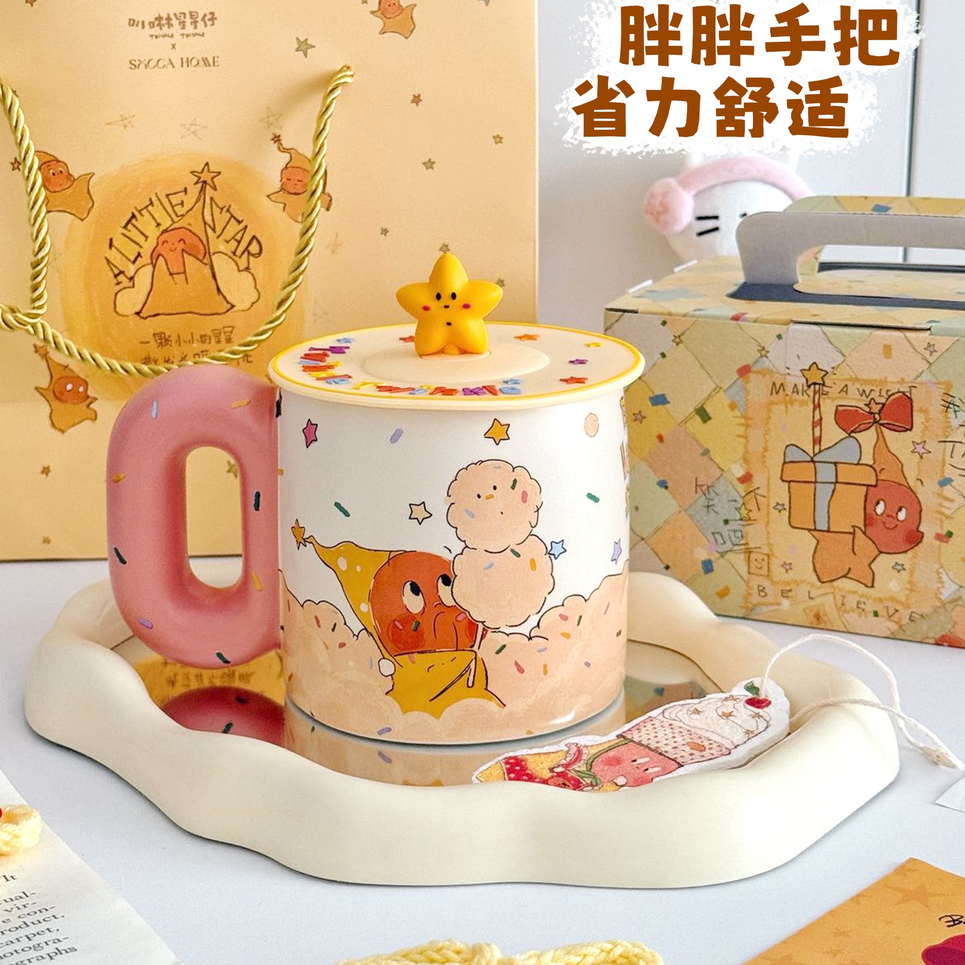 星星人胖胖新款陶瓷创意水杯马克杯大把手圣诞生日礼盒