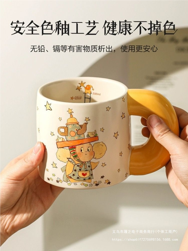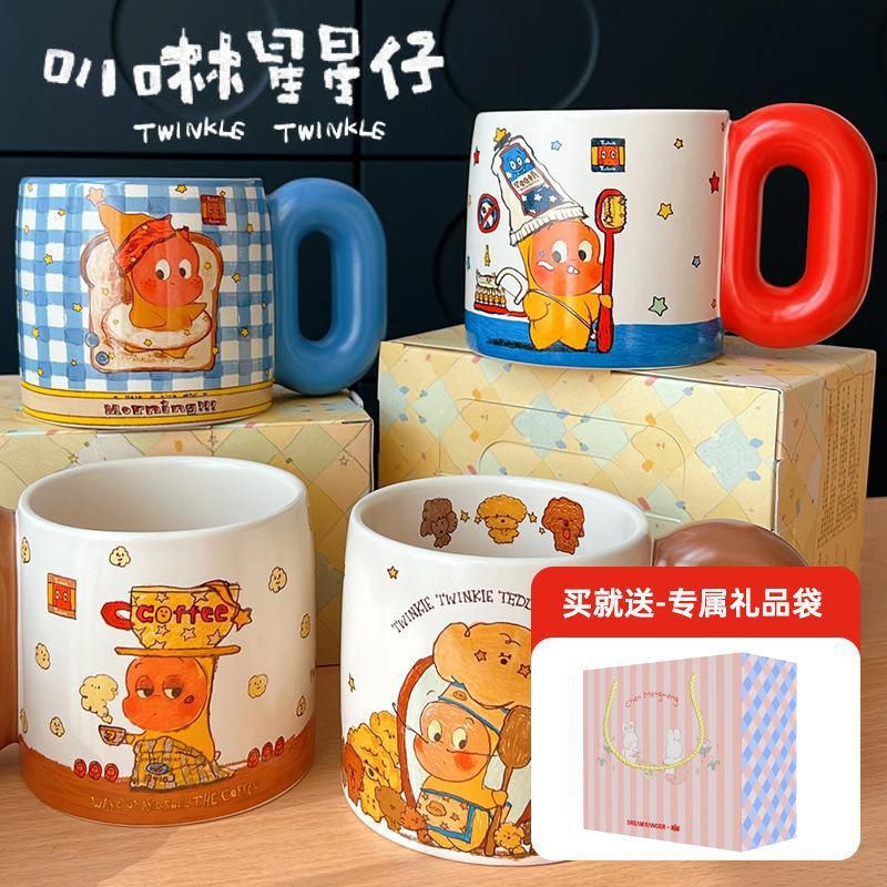 卡通星星人马克杯牛奶杯陶瓷杯复古早餐杯儿童水杯餐具网红