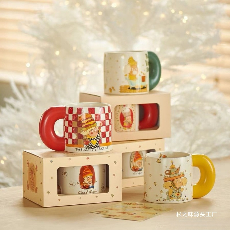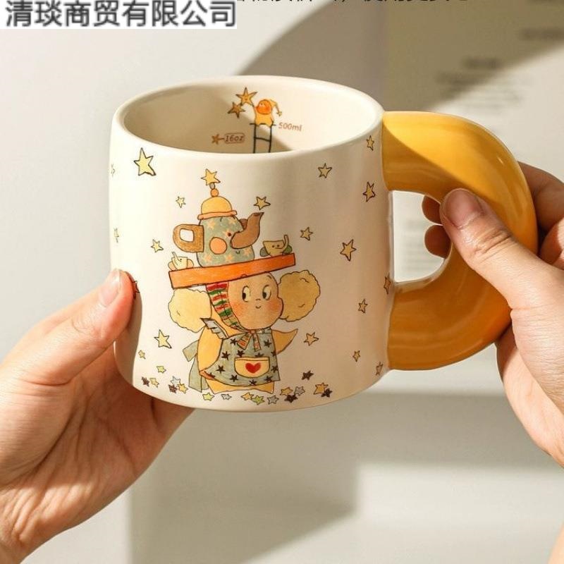 漫画星人マグカップ牛乳カップ陶磁器カップレトロ朝食カップ子供用コップ食器ネット赤