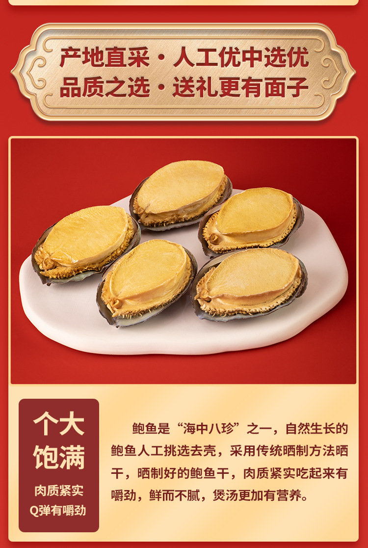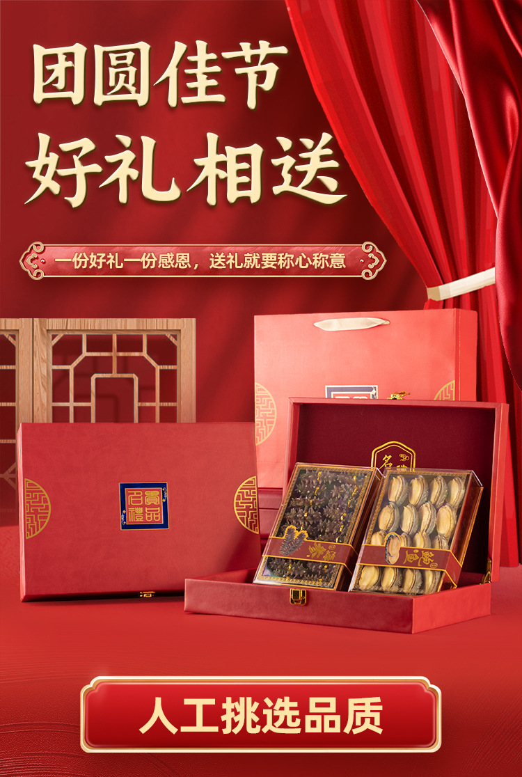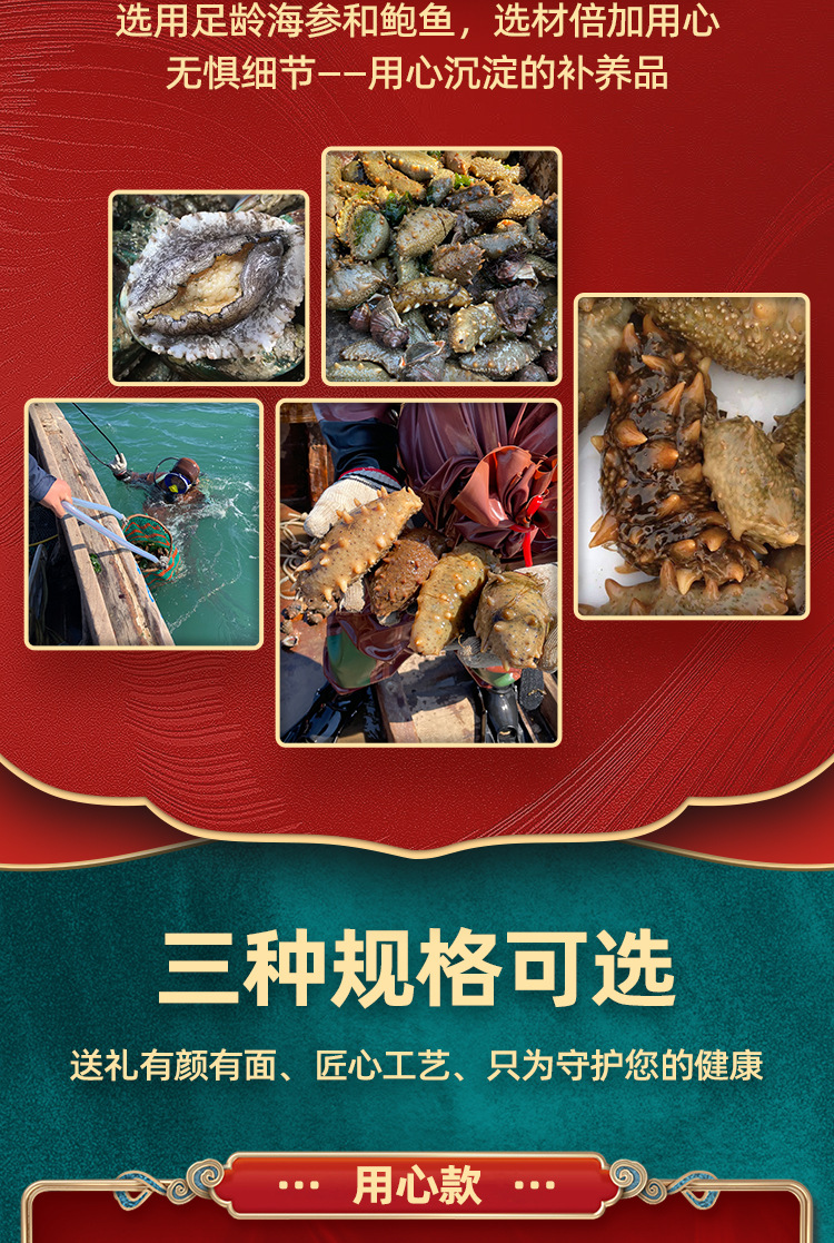 新年のギフト、実用的なギフト、高級ナマコとアワビのギフトボックス、高齢者やリーダー向けの花の皮と高麗人参の乾物